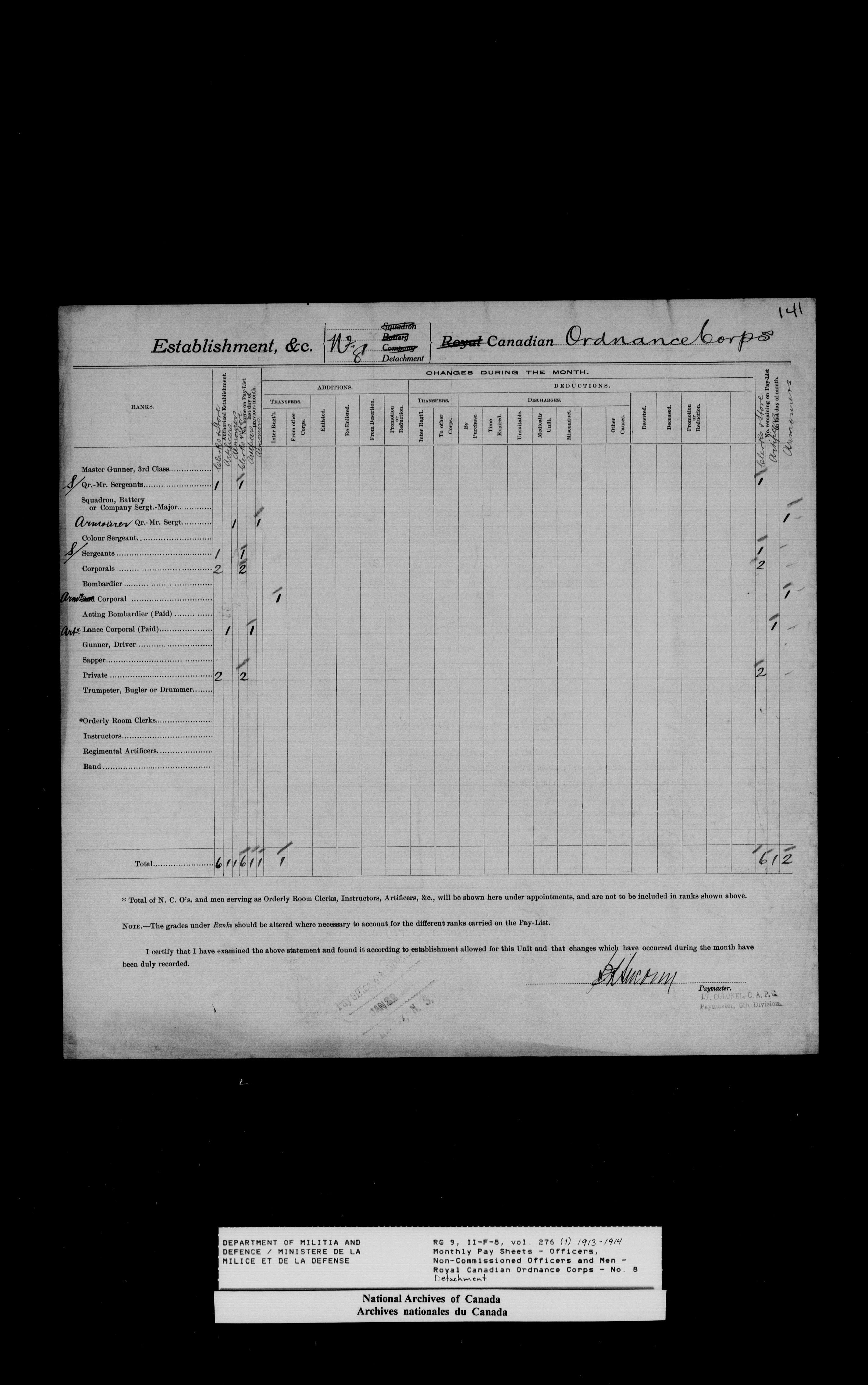 Nominal rolls and paylists for the Permanent Force (1871-1915) - 18435