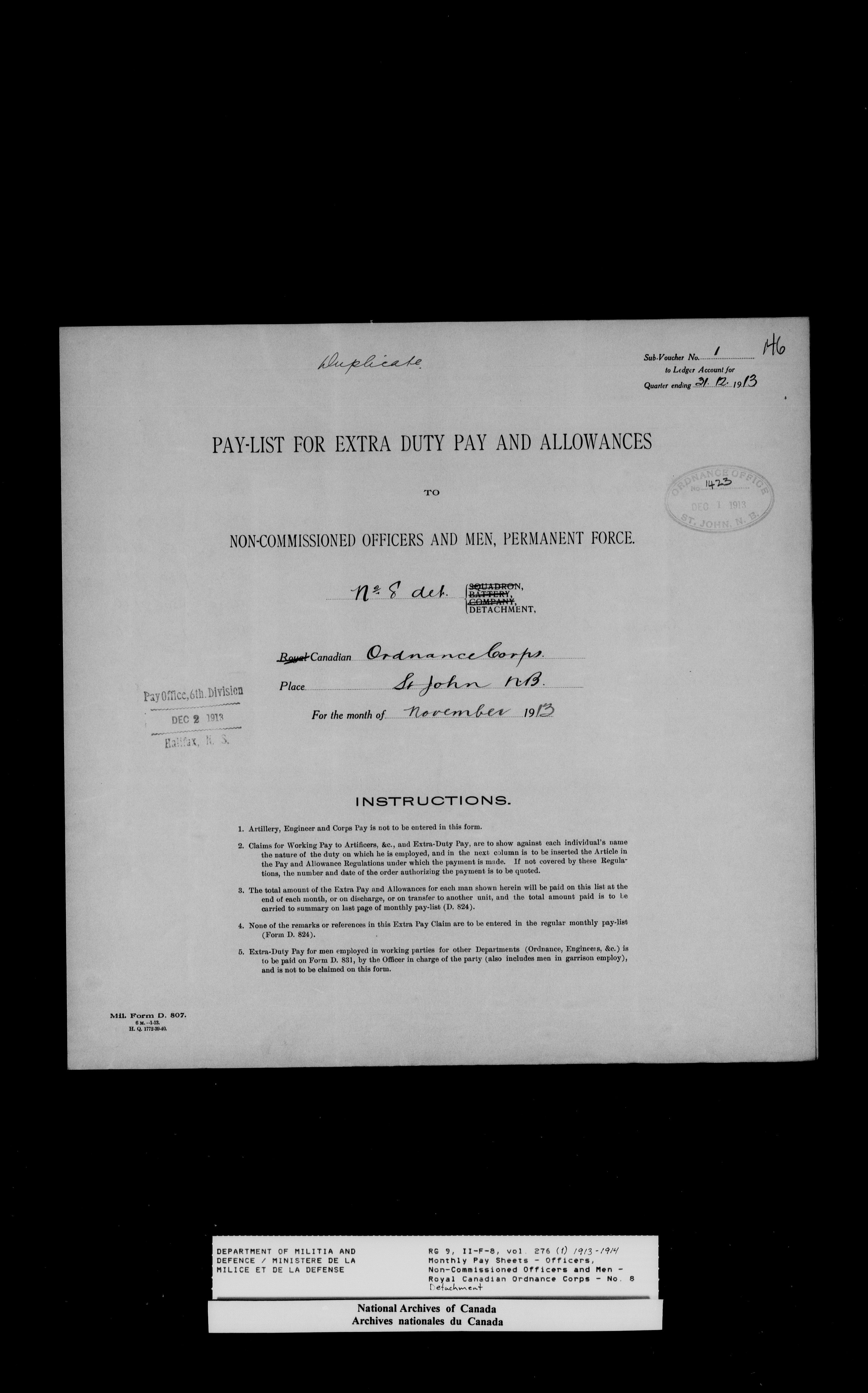 Nominal rolls and paylists for the Permanent Force (1871-1915) - 18435