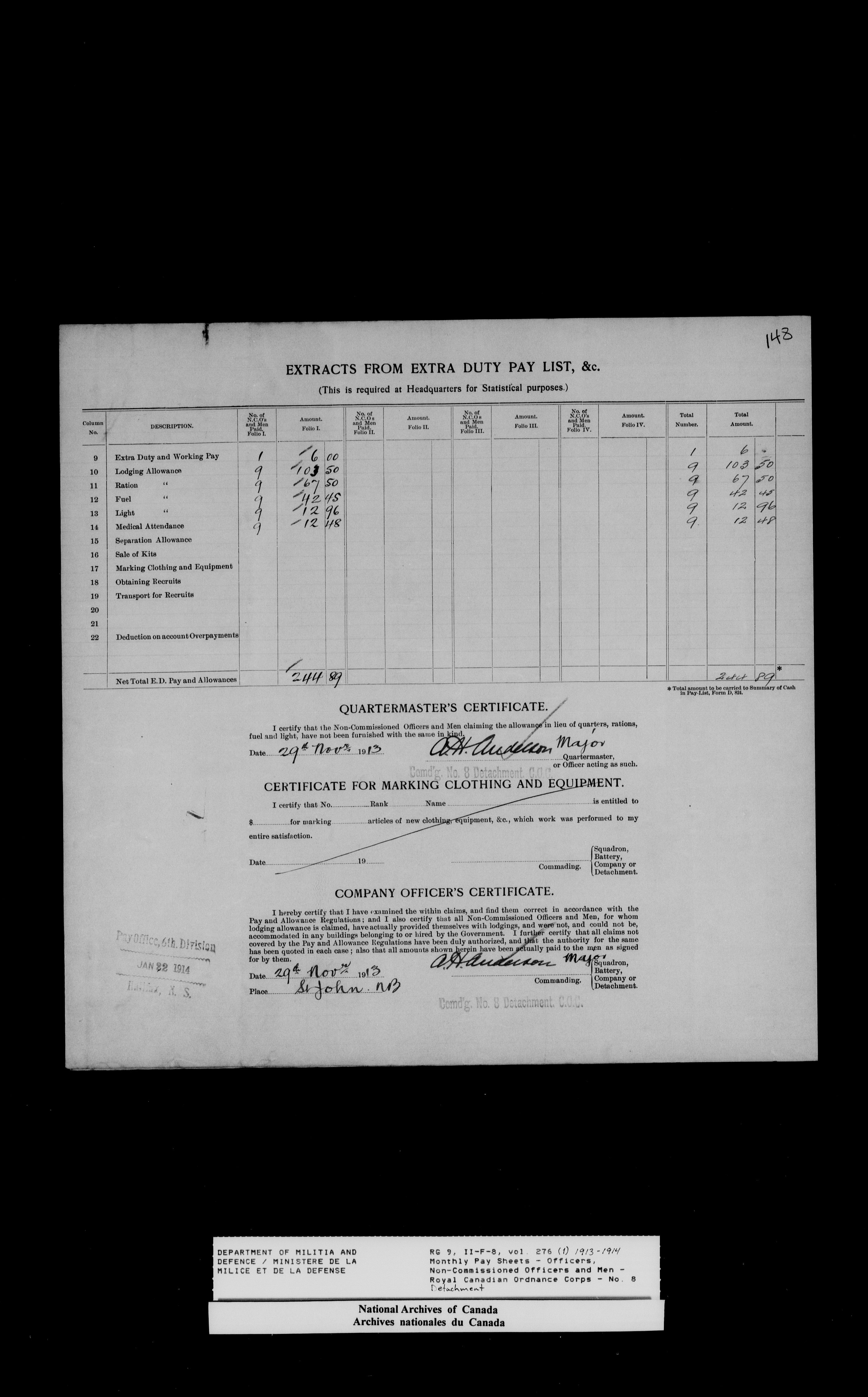 Nominal rolls and paylists for the Permanent Force (1871-1915) - 18435