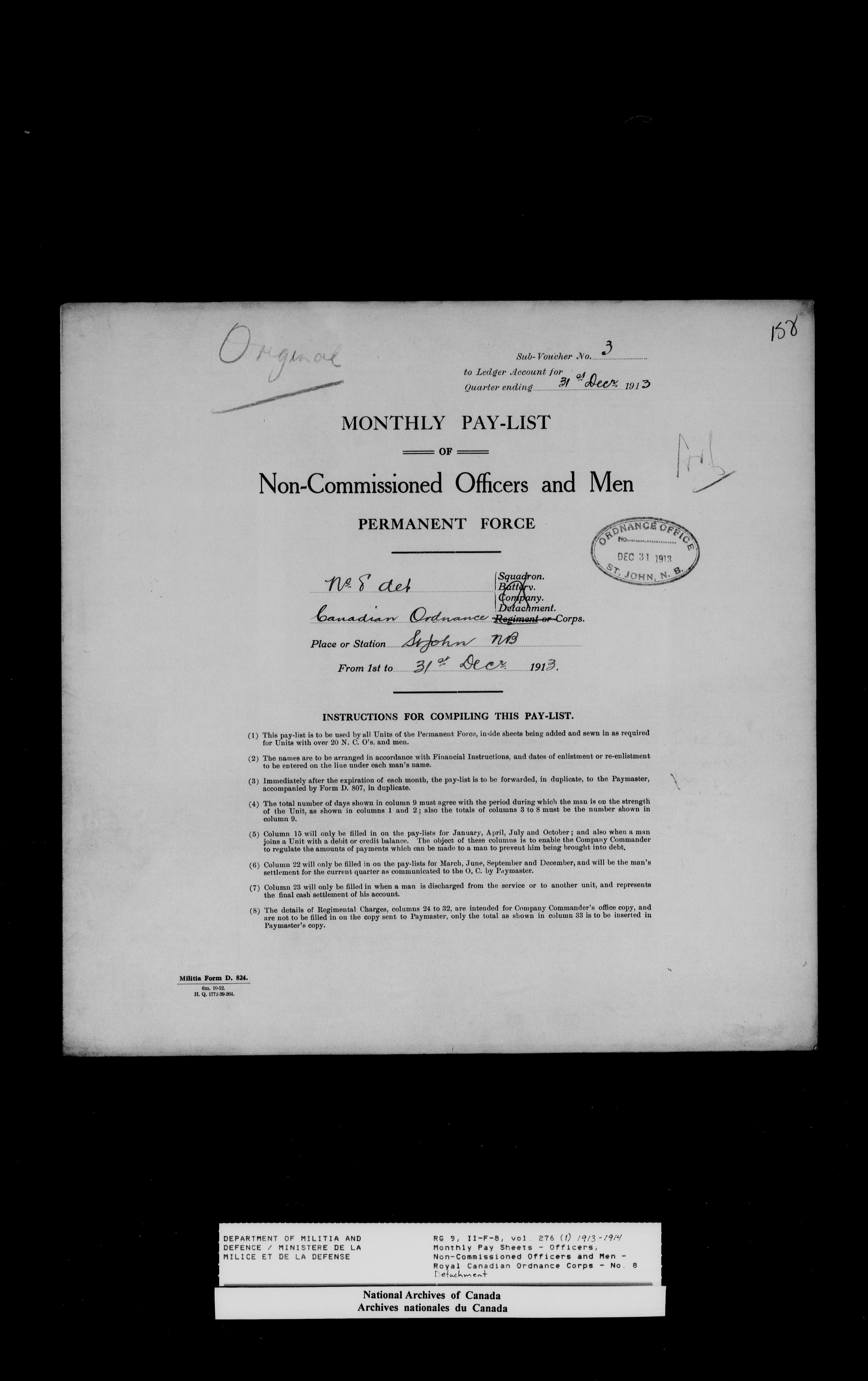 Nominal rolls and paylists for the Permanent Force (1871-1915) - 18435