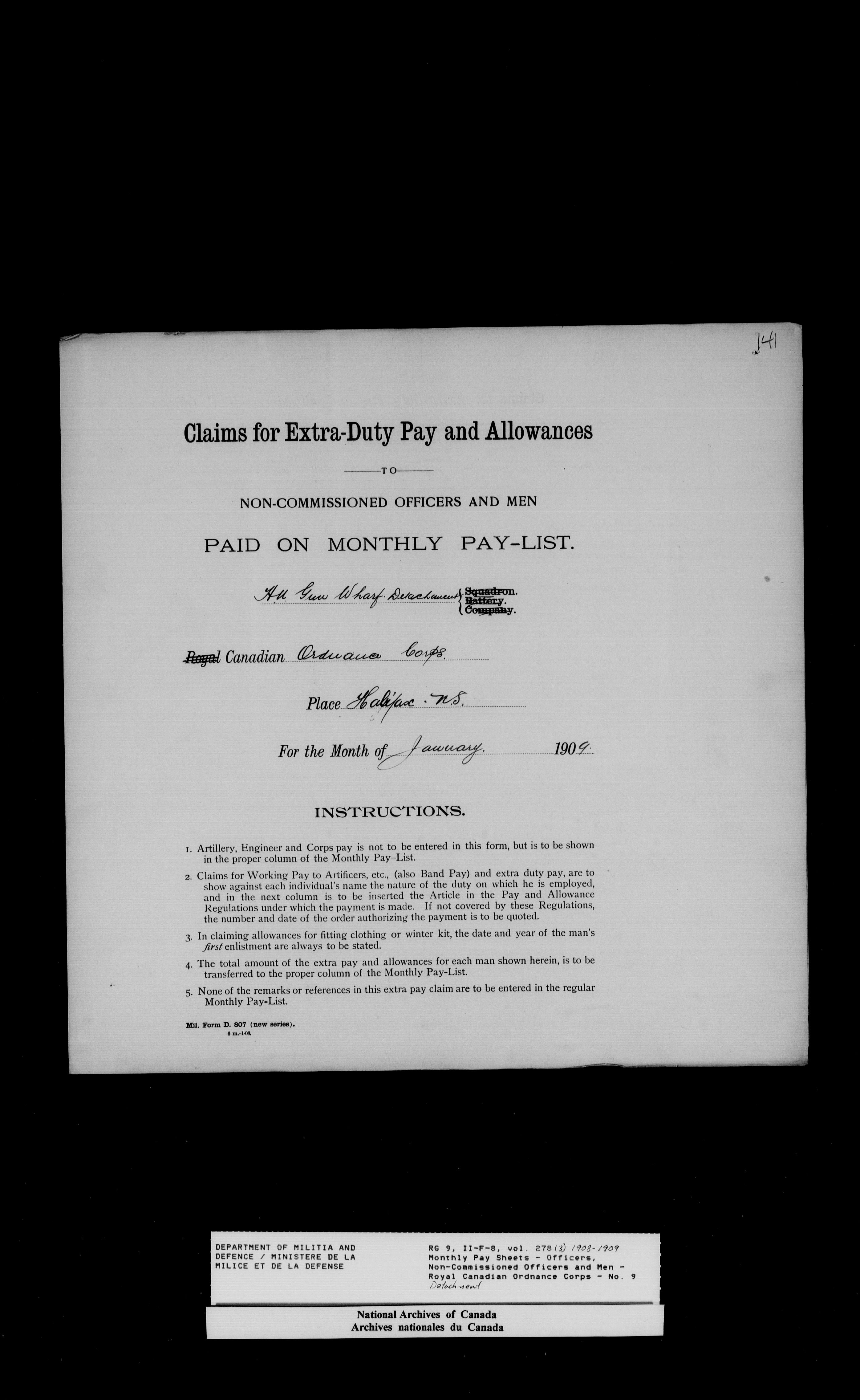 Nominal rolls and paylists for the Permanent Force (1871-1915) - 18435