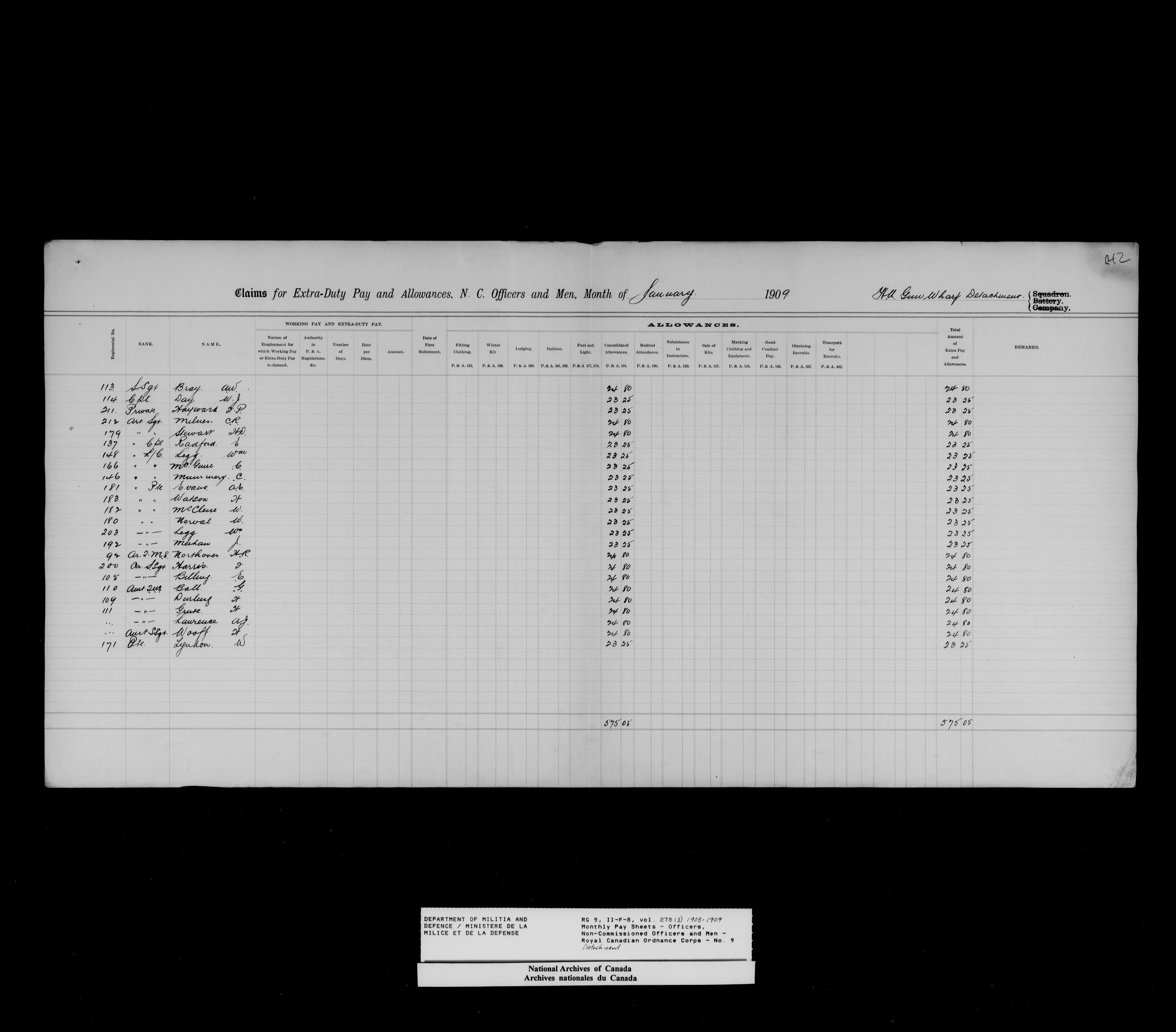 Nominal rolls and paylists for the Permanent Force (1871-1915) - 18435