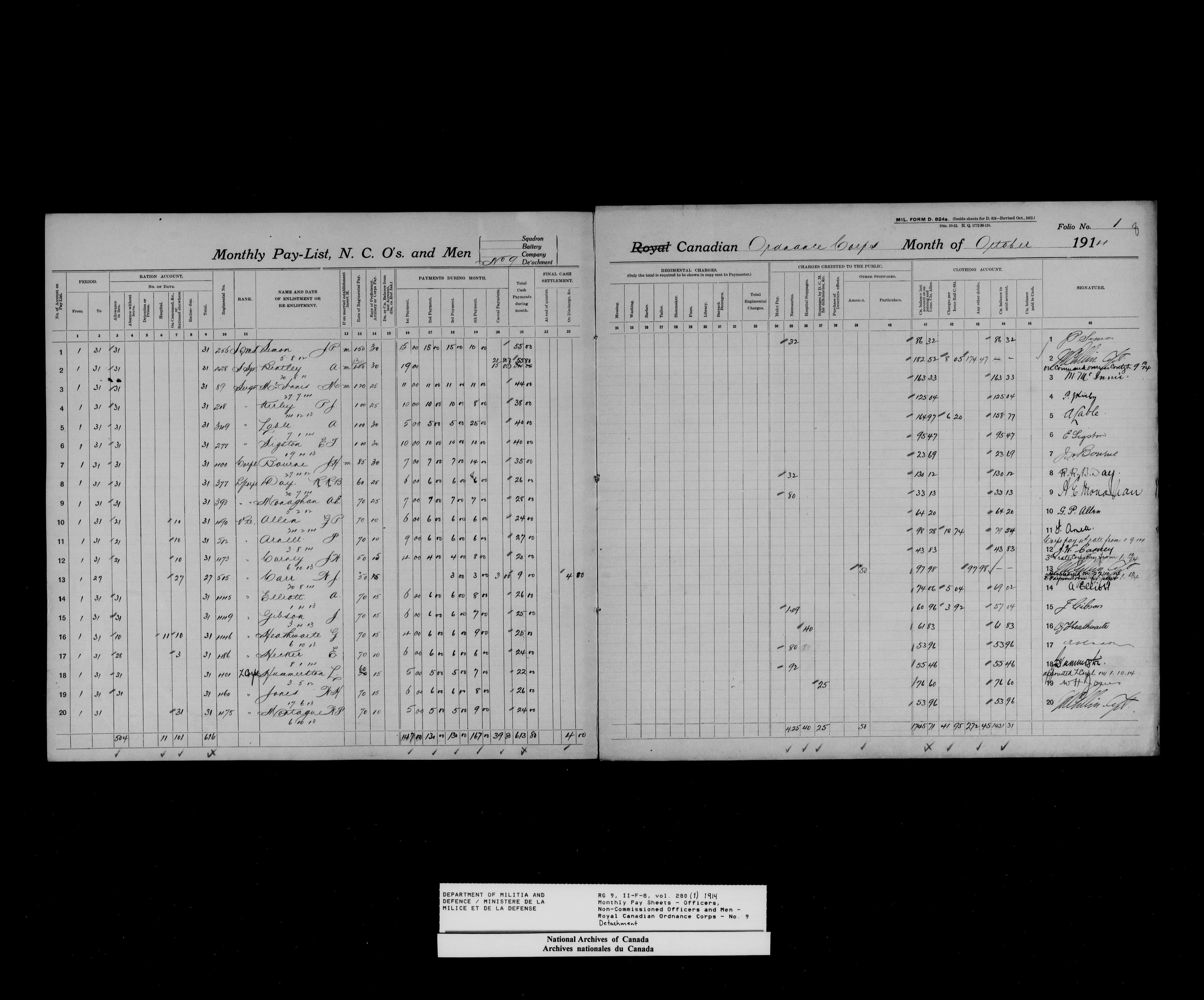 Nominal rolls and paylists for the Permanent Force (1871-1915) - 18437