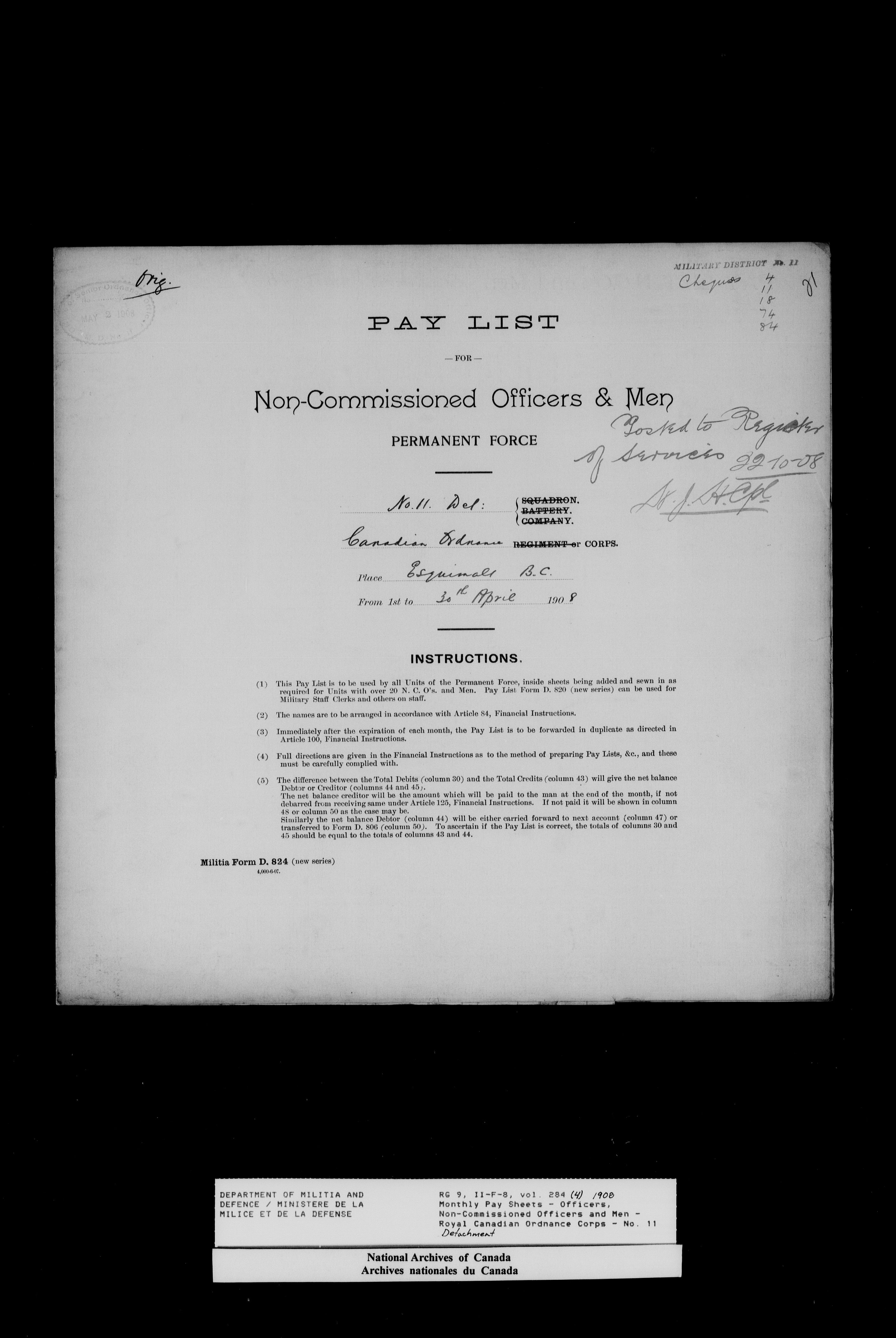 Nominal rolls and paylists for the Permanent Force (1871-1915) - 18438