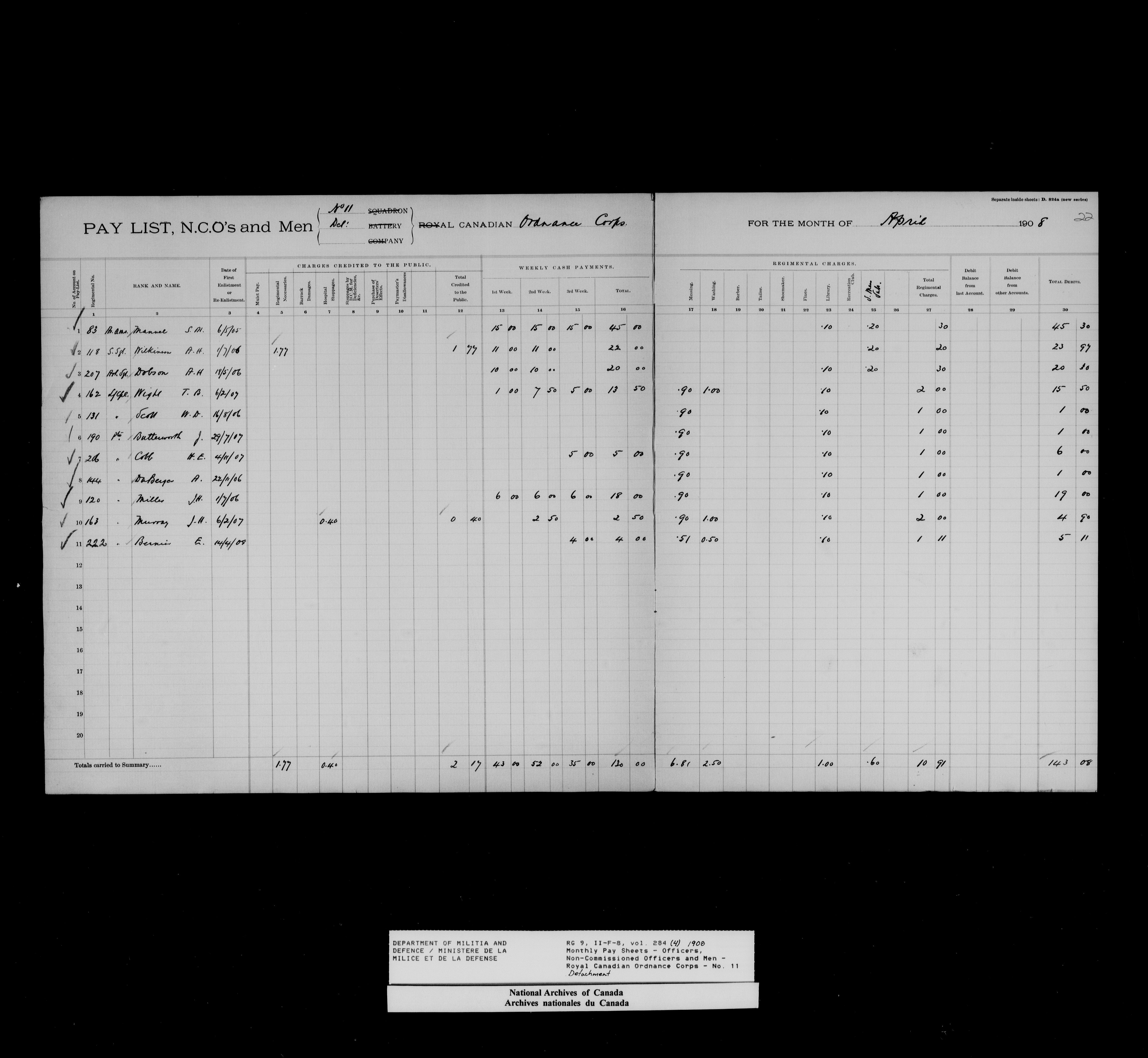 Nominal rolls and paylists for the Permanent Force (1871-1915) - 18438
