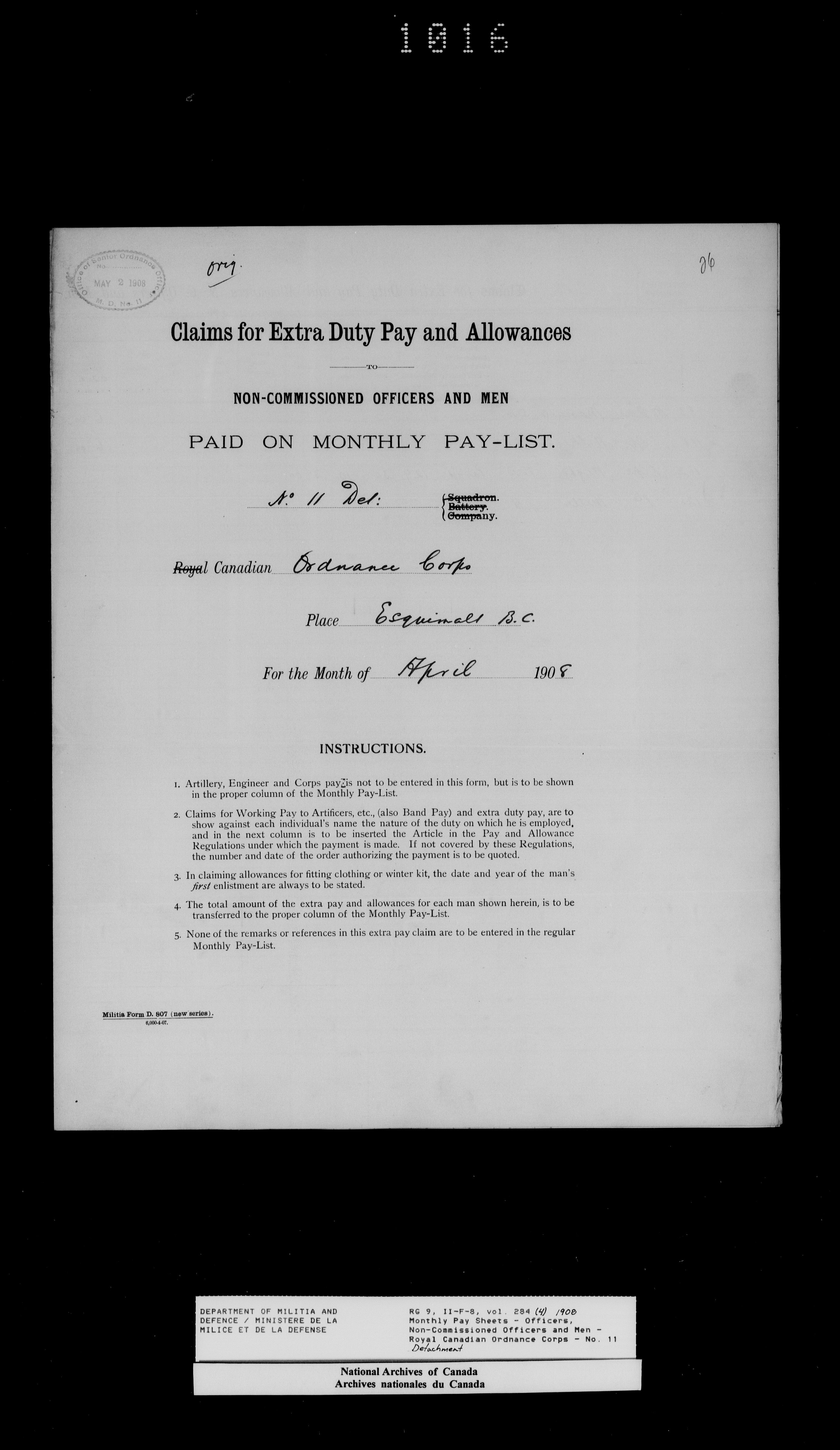 Nominal rolls and paylists for the Permanent Force (1871-1915) - 18438