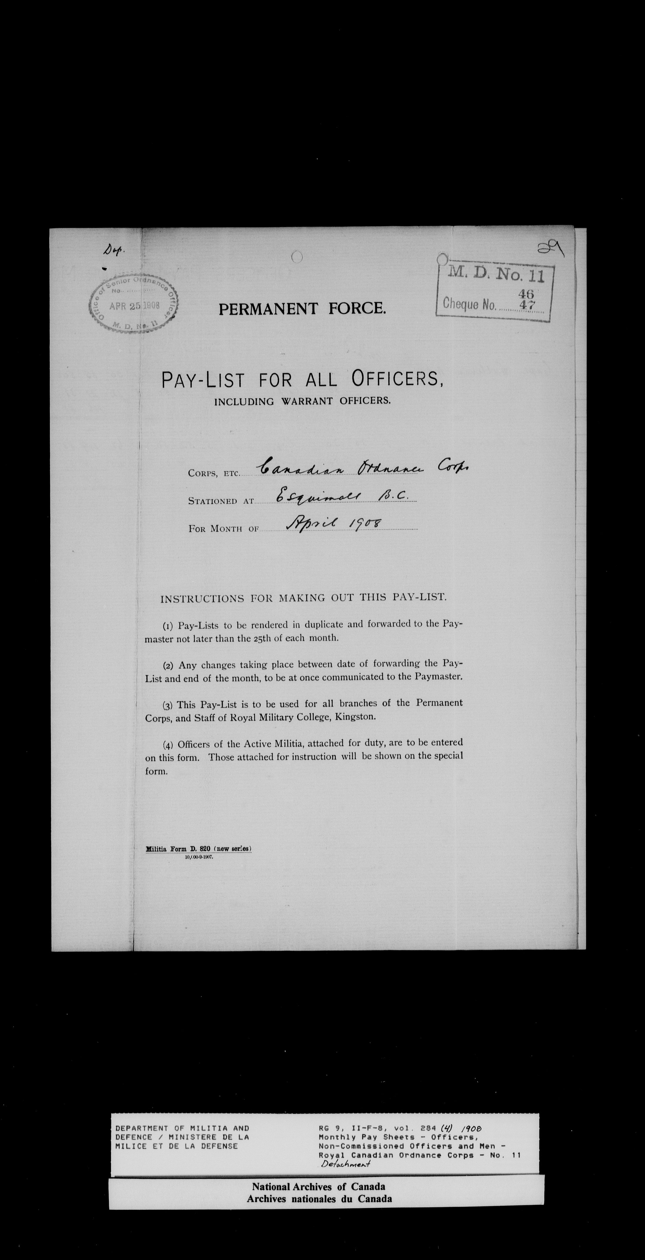 Nominal rolls and paylists for the Permanent Force (1871-1915) - 18438