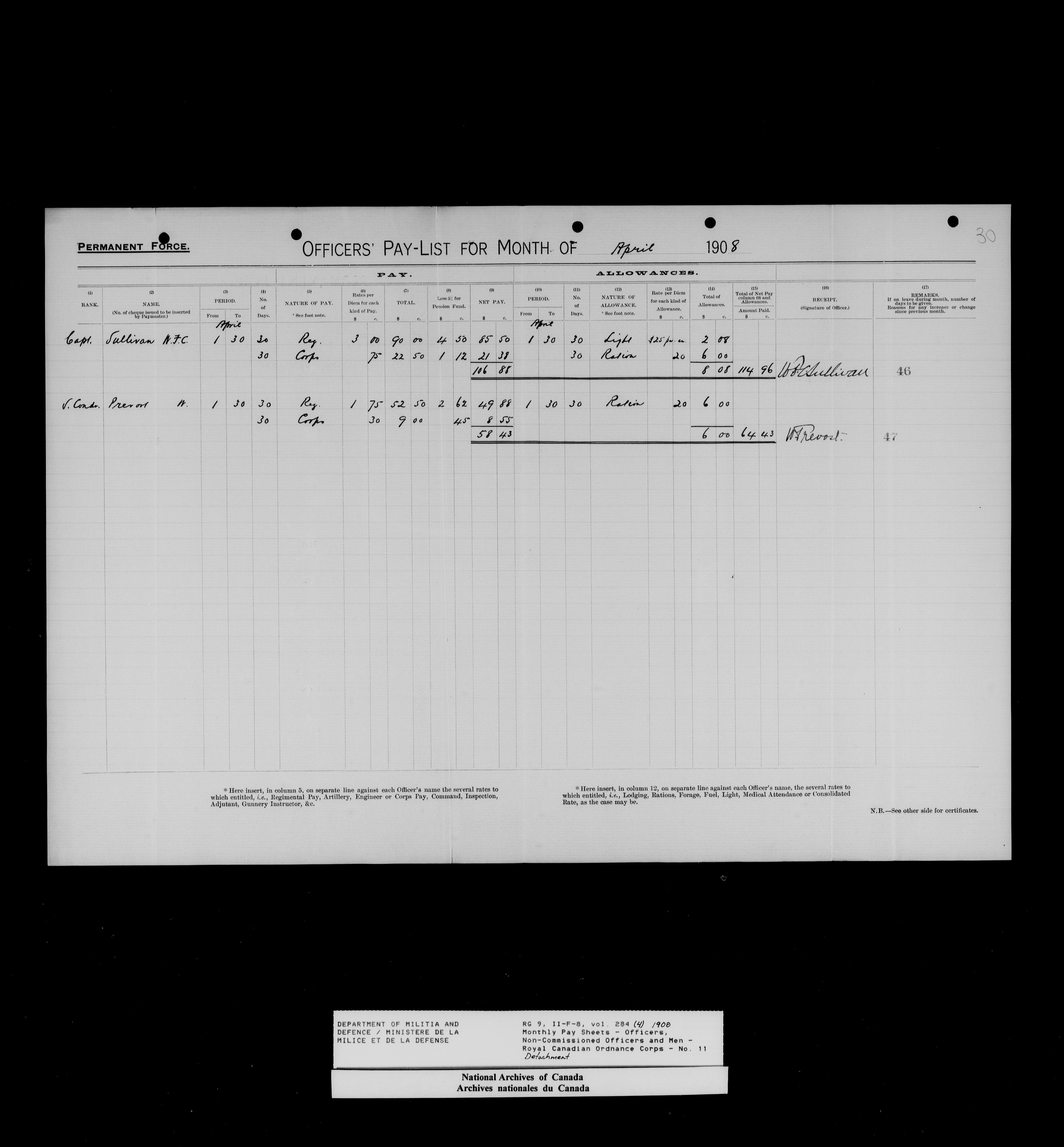 Nominal rolls and paylists for the Permanent Force (1871-1915) - 18438