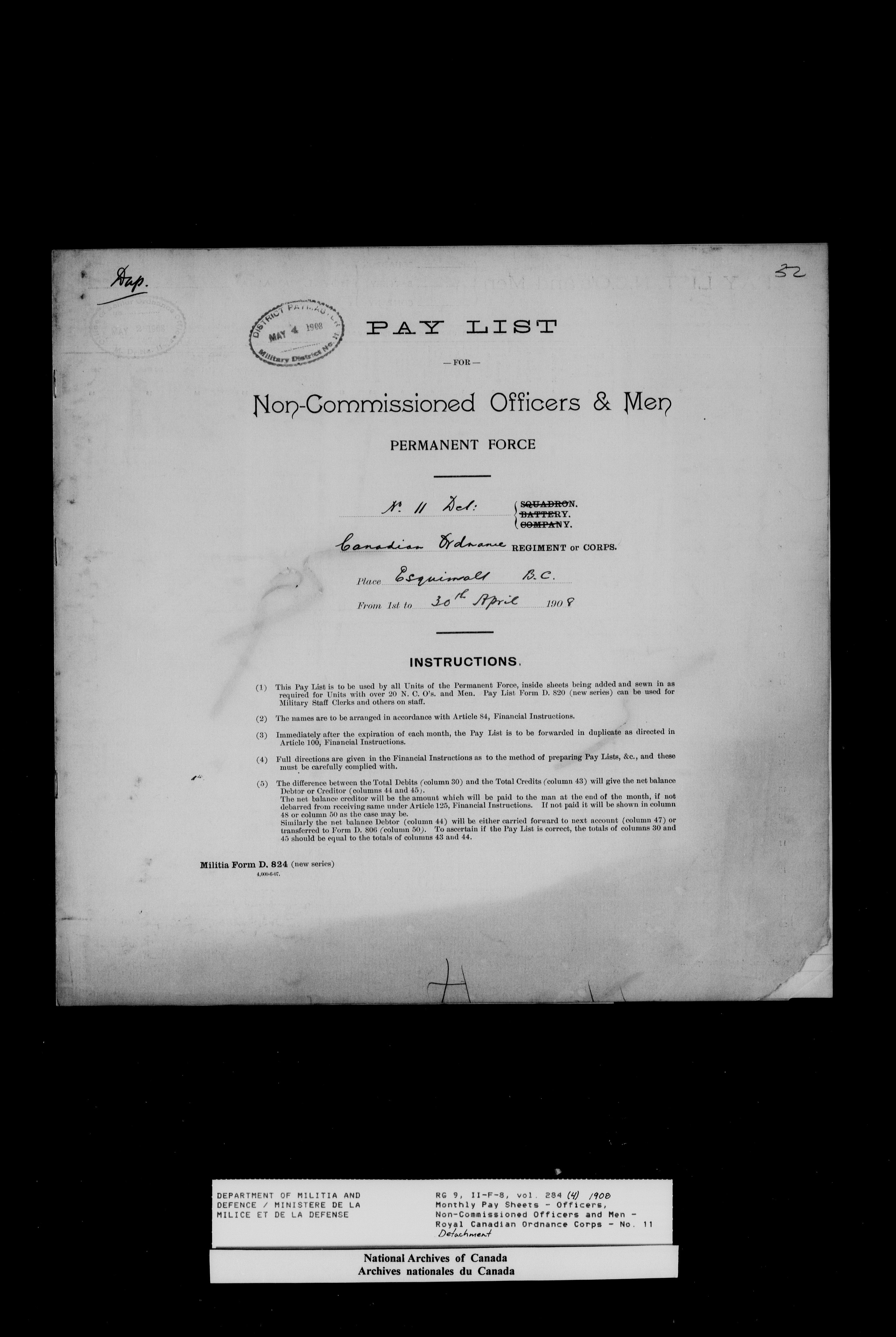 Nominal rolls and paylists for the Permanent Force (1871-1915) - 18438