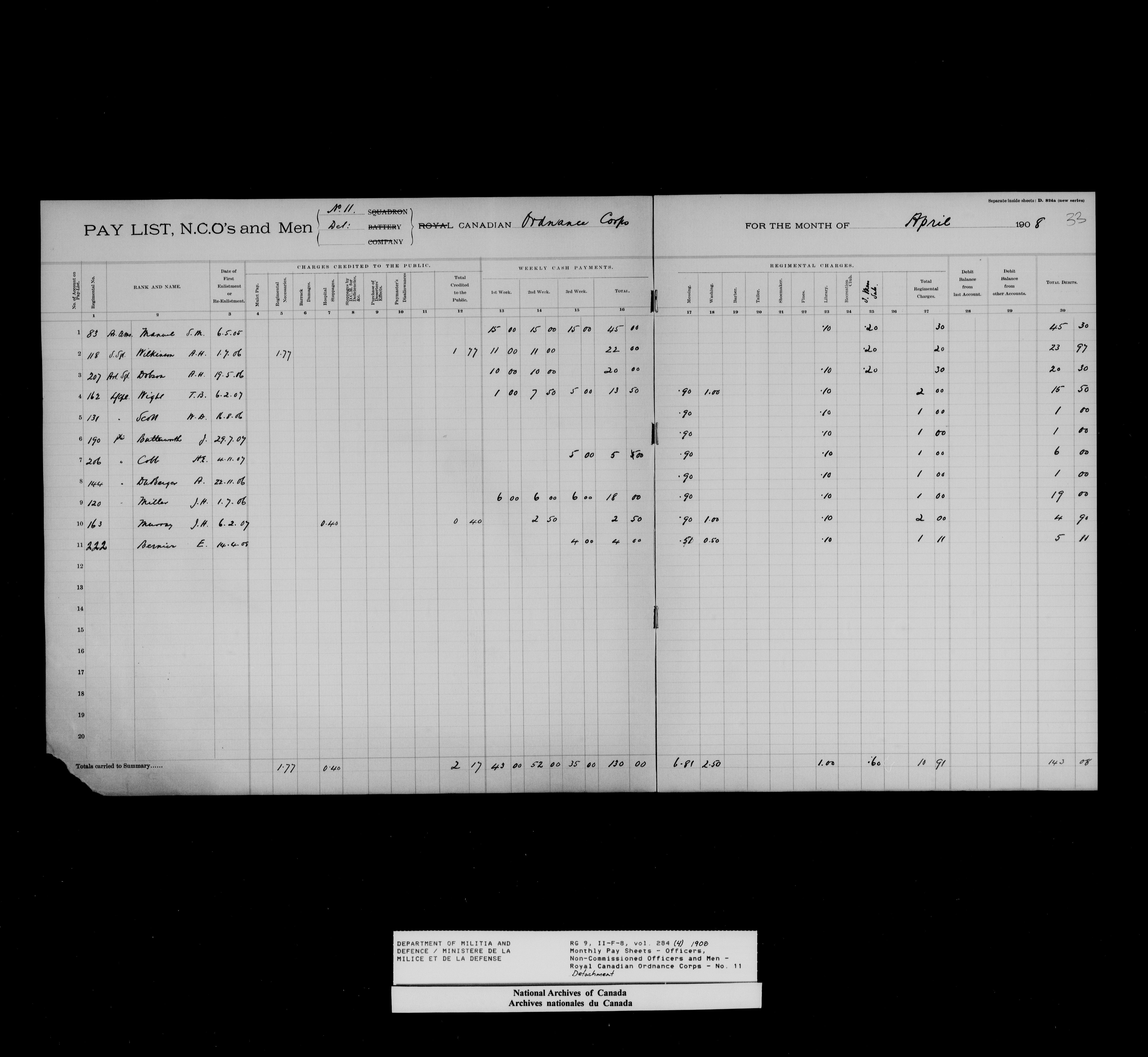 Nominal rolls and paylists for the Permanent Force (1871-1915) - 18438