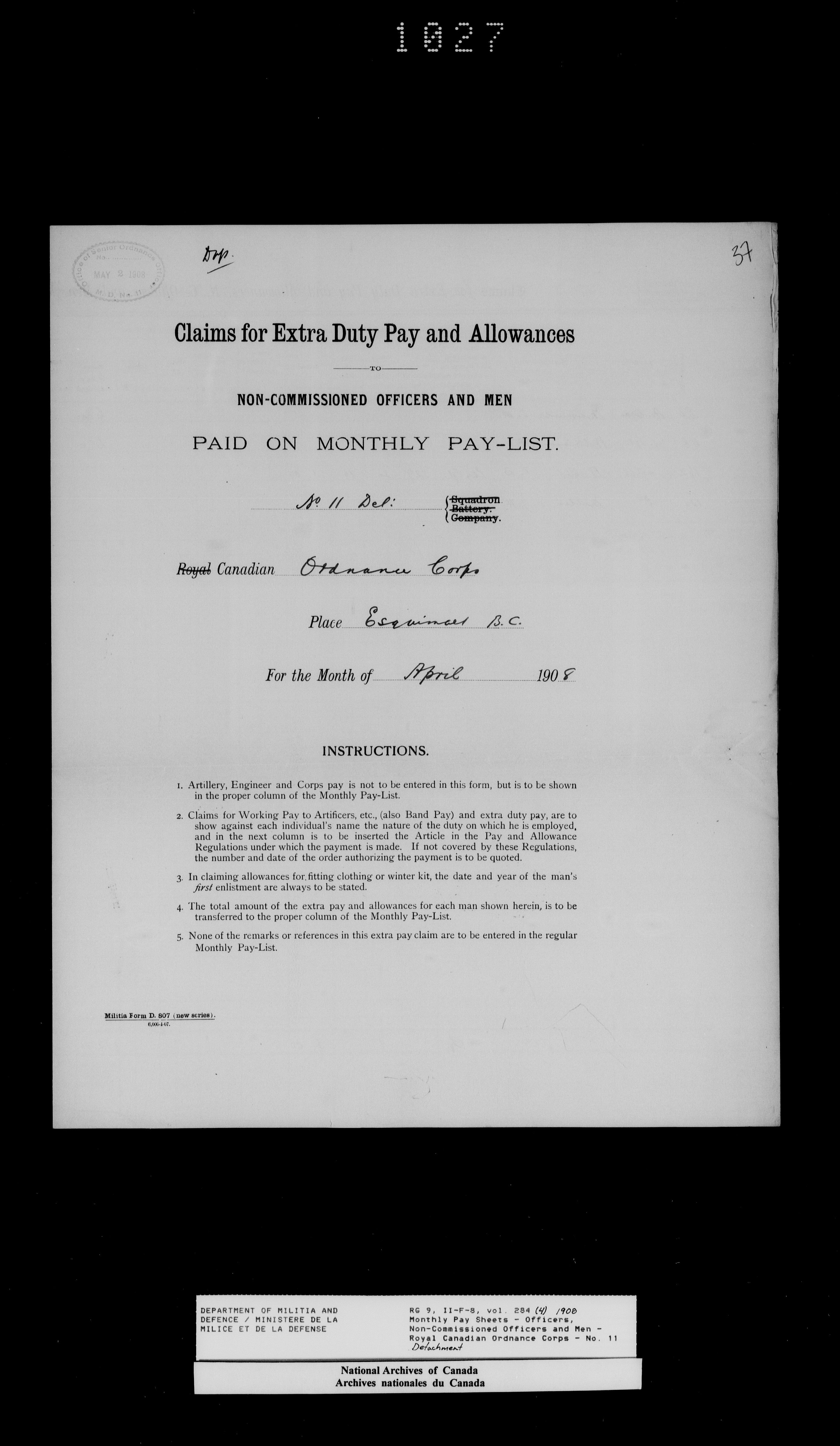 Nominal rolls and paylists for the Permanent Force (1871-1915) - 18438