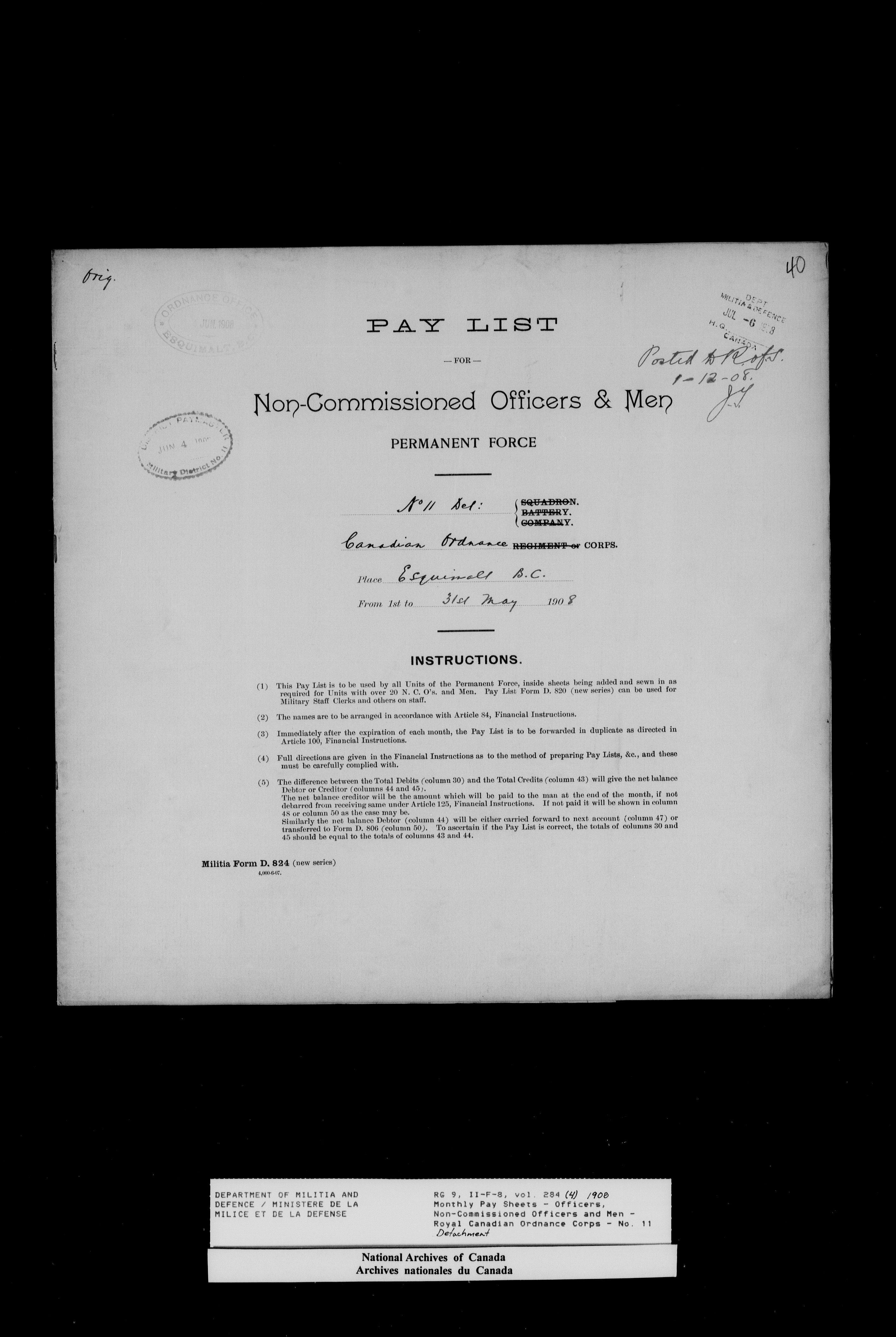 Nominal rolls and paylists for the Permanent Force (1871-1915) - 18438