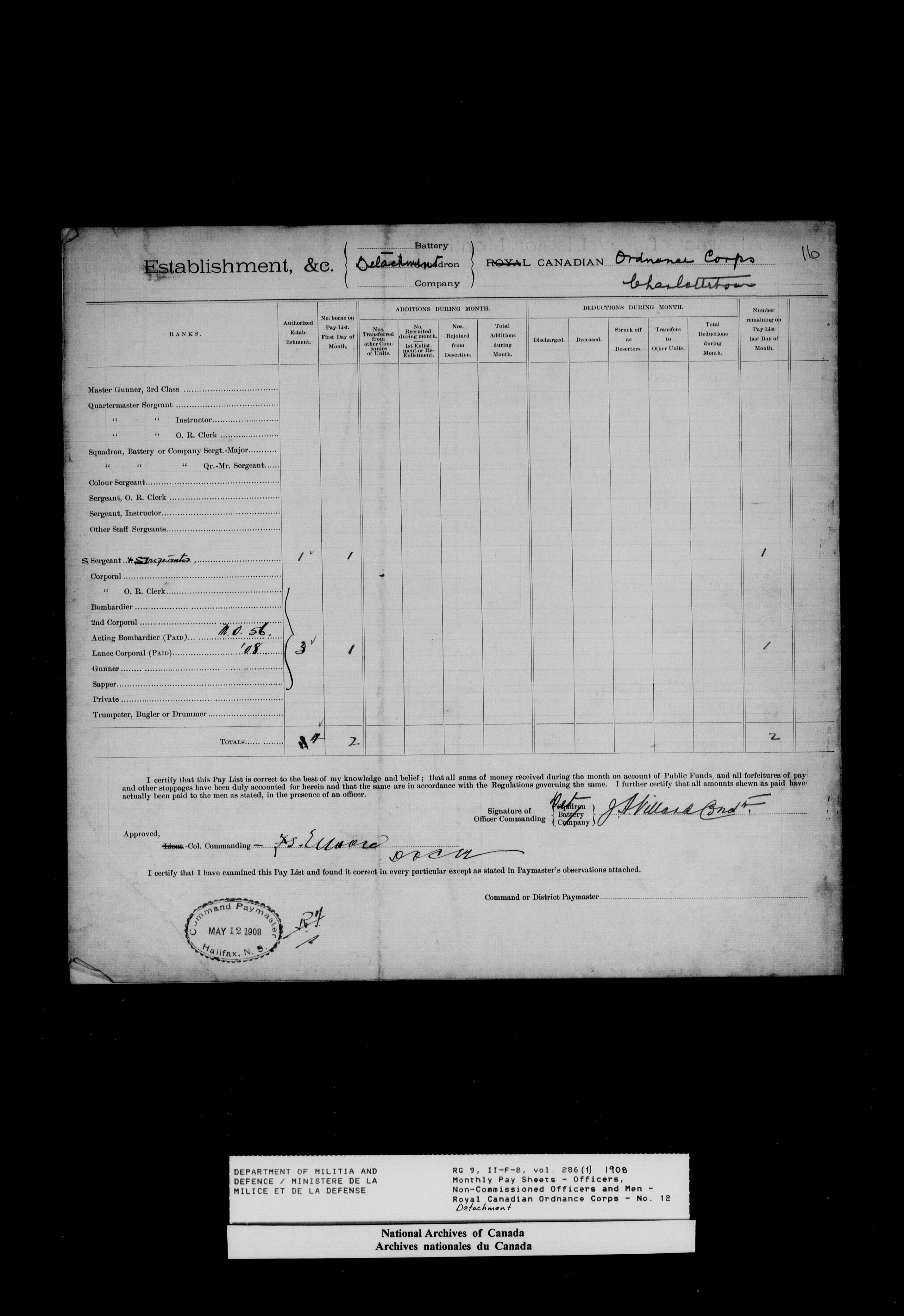 Nominal rolls and paylists for the Permanent Force (1871-1915) - 18439