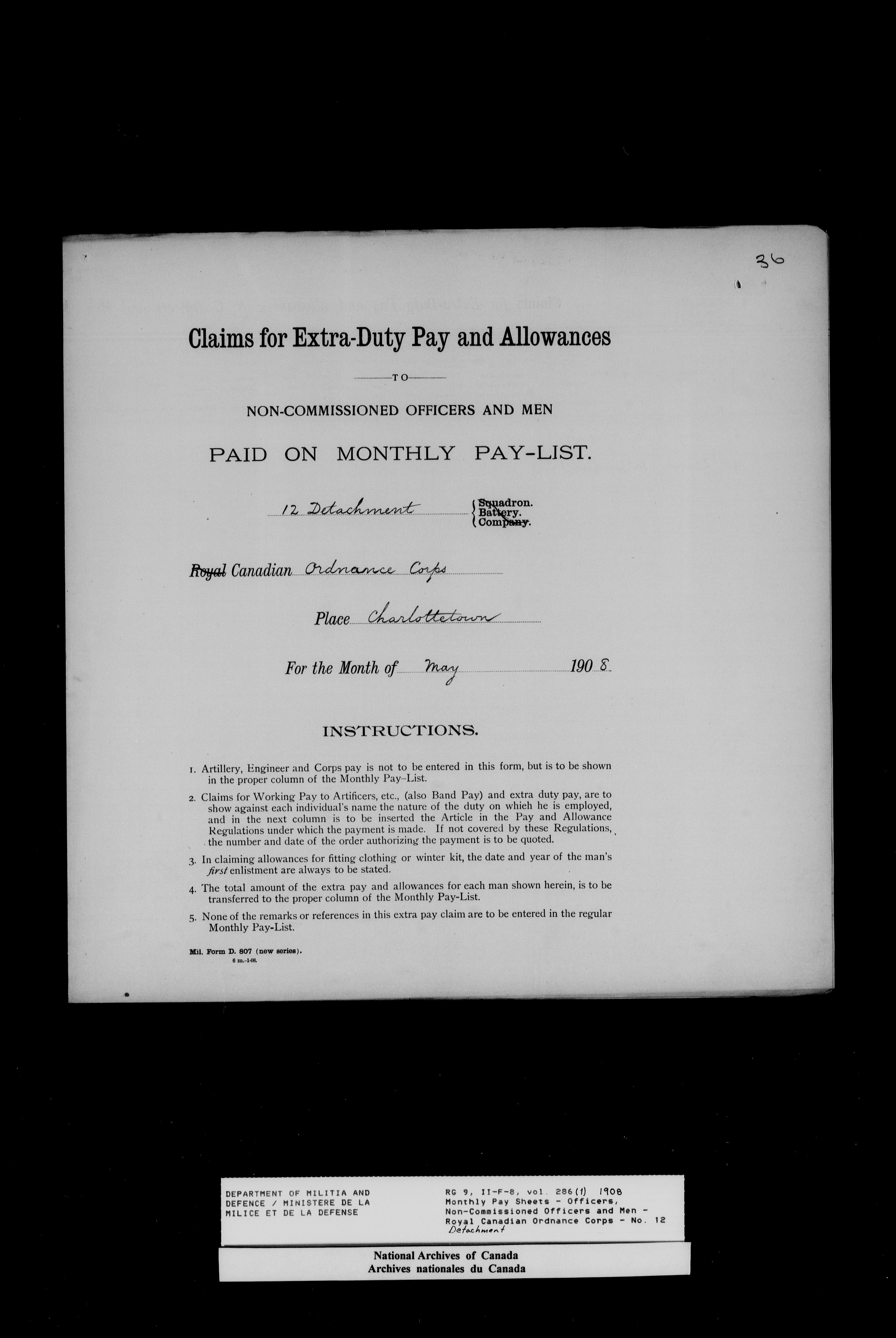 Nominal rolls and paylists for the Permanent Force (1871-1915) - 18439