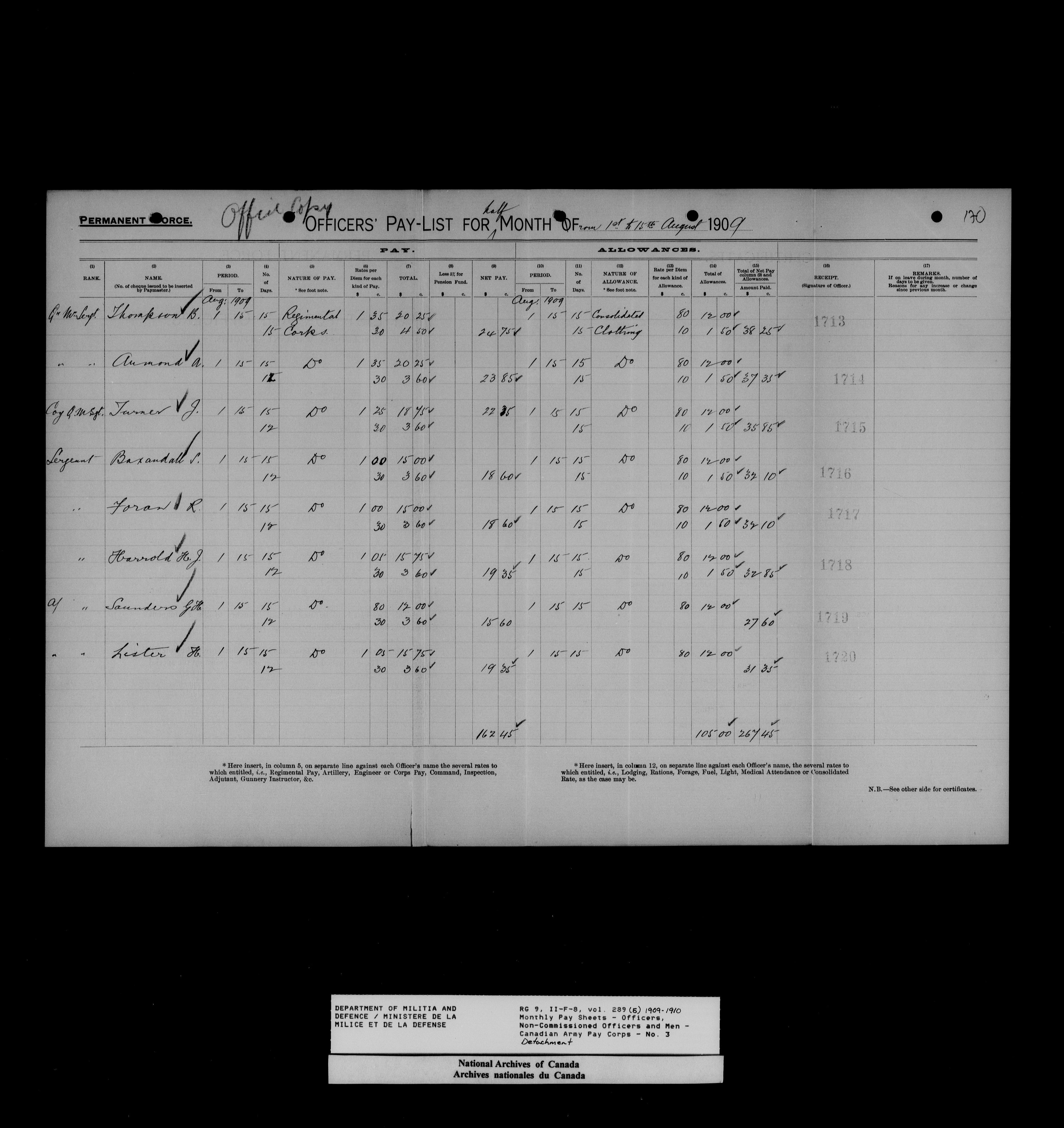Nominal rolls and paylists for the Permanent Force (1871-1915) - 18441