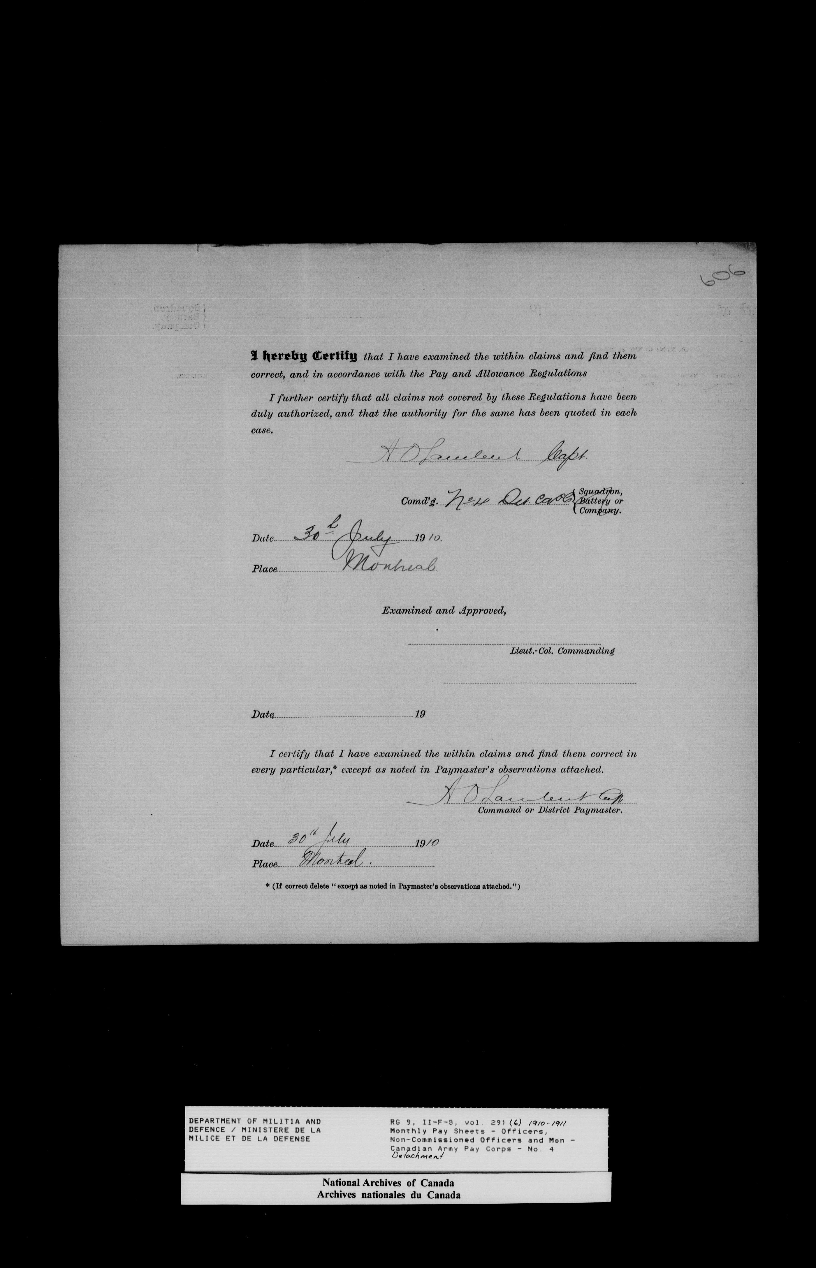 Department of Militia and Defence; nominal rolls and paylists for the Permanent Force : T-18442