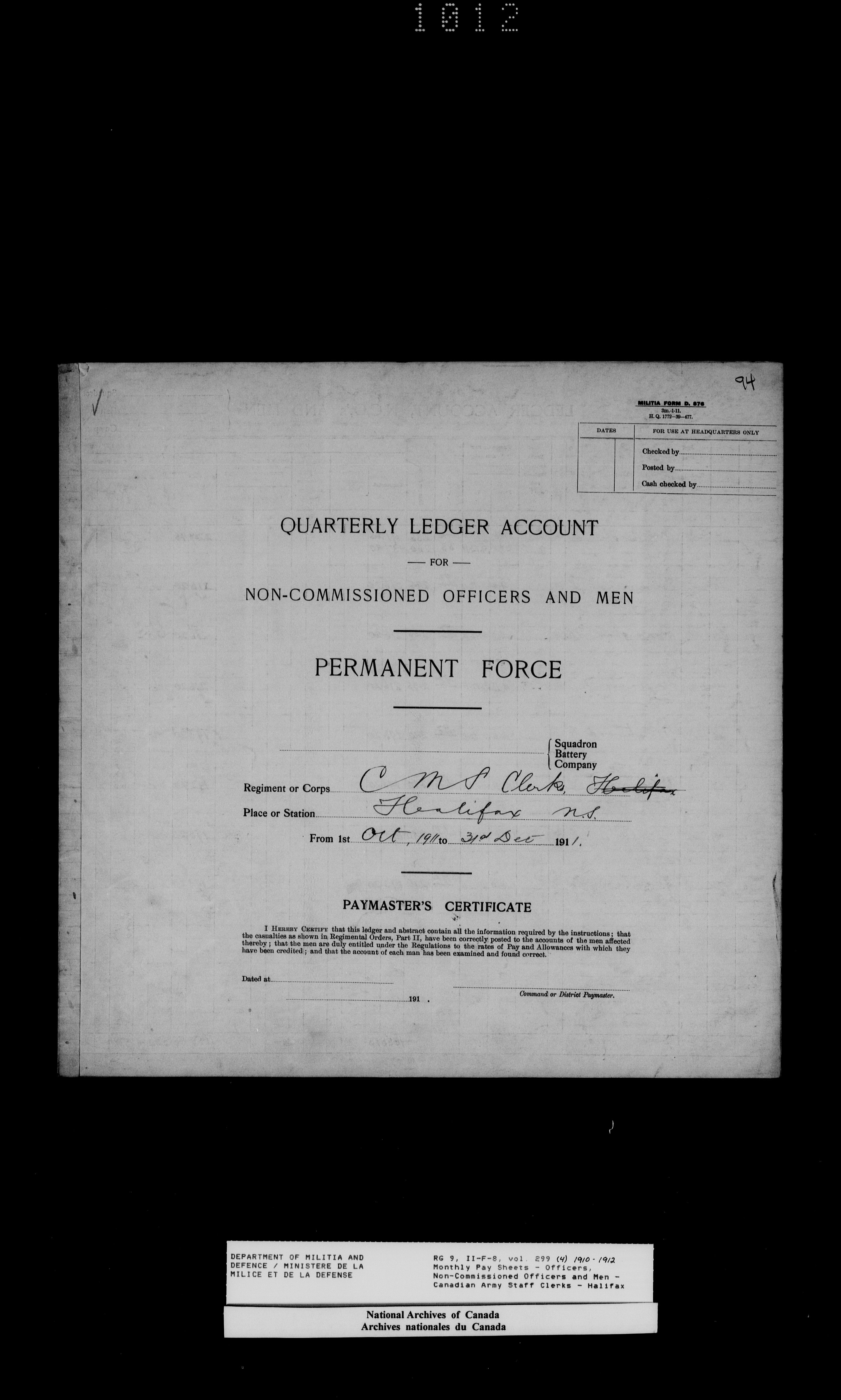 Nominal rolls and paylists for the Permanent Force (1871-1915) - 18446