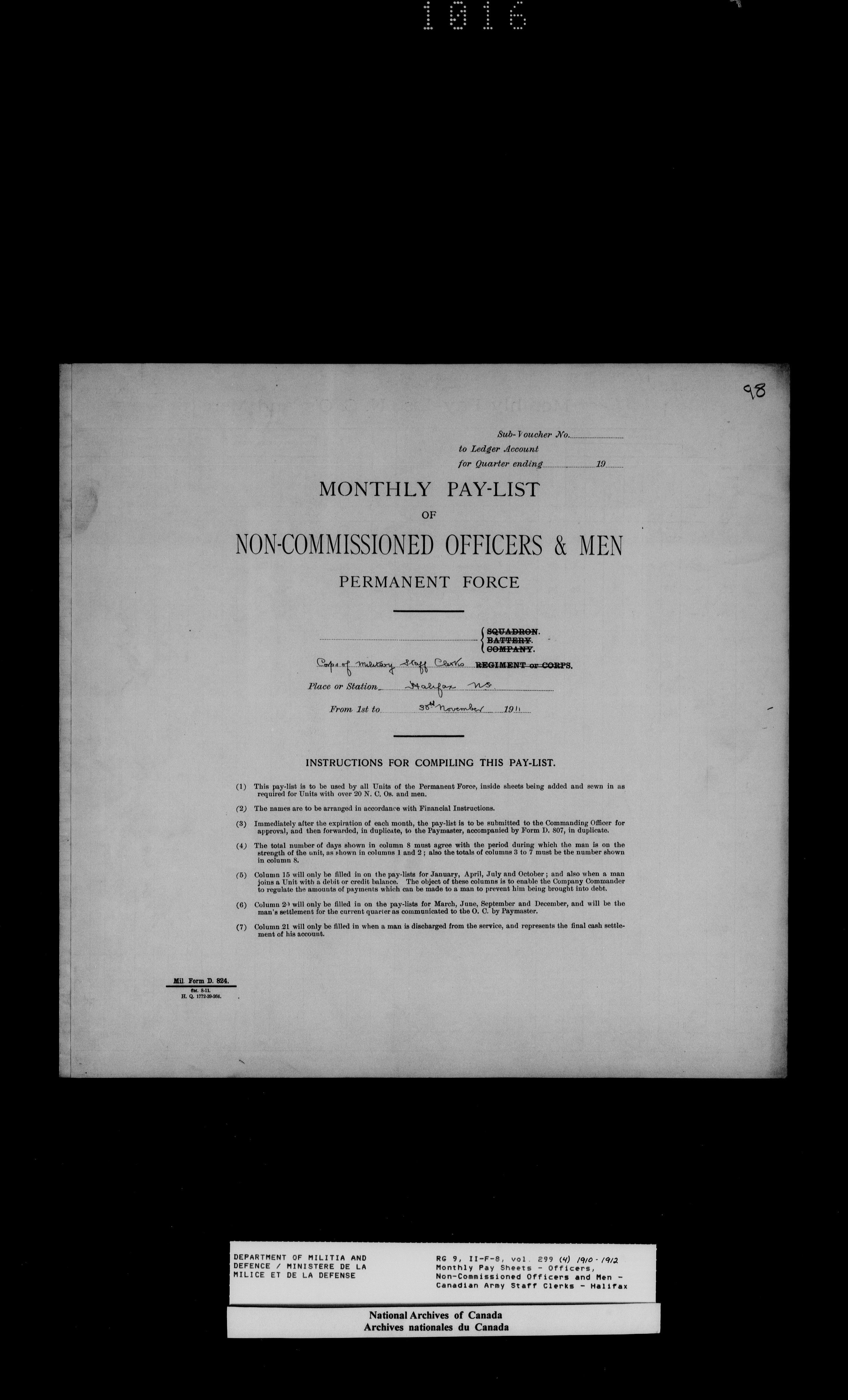 Nominal rolls and paylists for the Permanent Force (1871-1915) - 18446