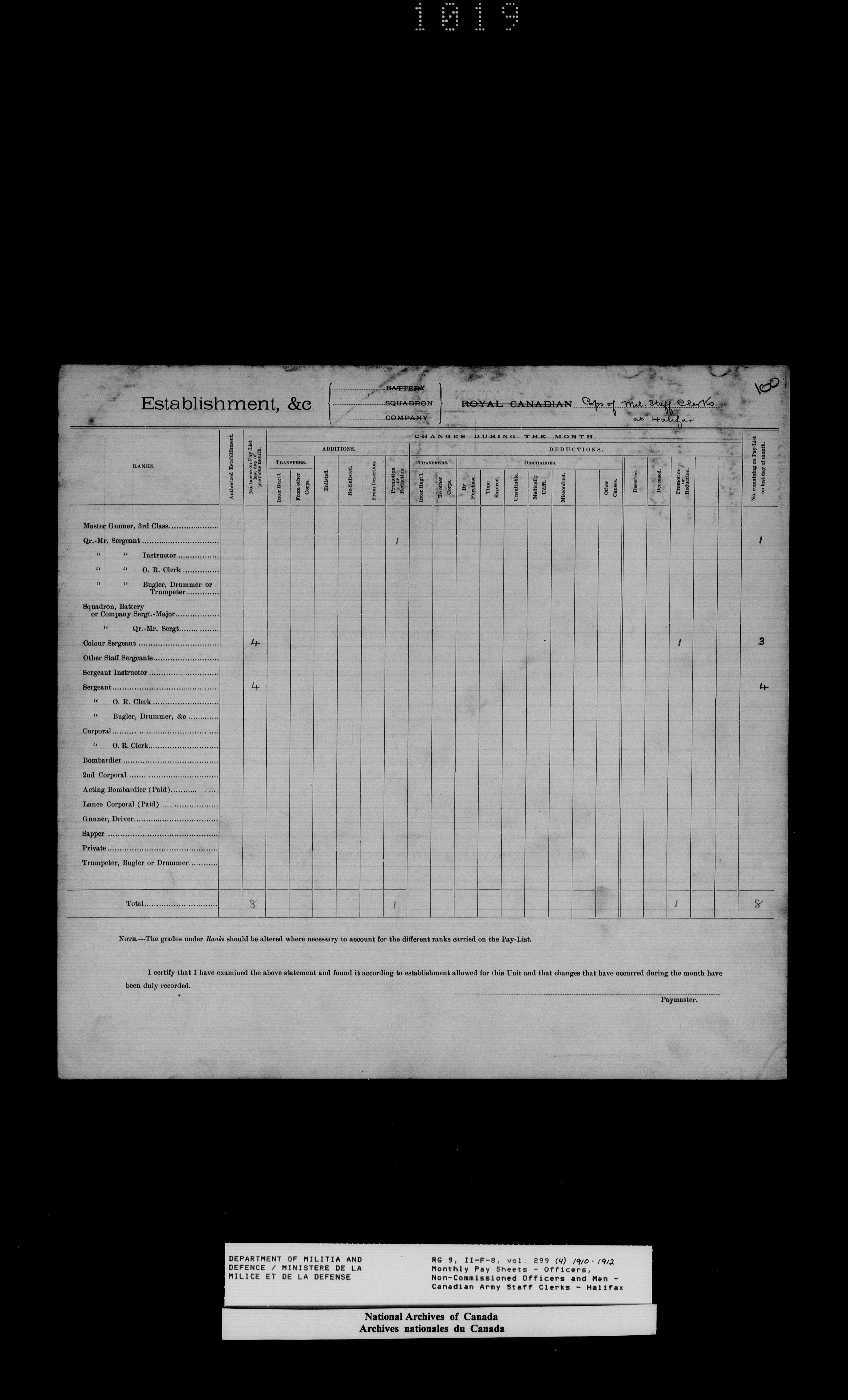 Nominal rolls and paylists for the Permanent Force (1871-1915) - 18446