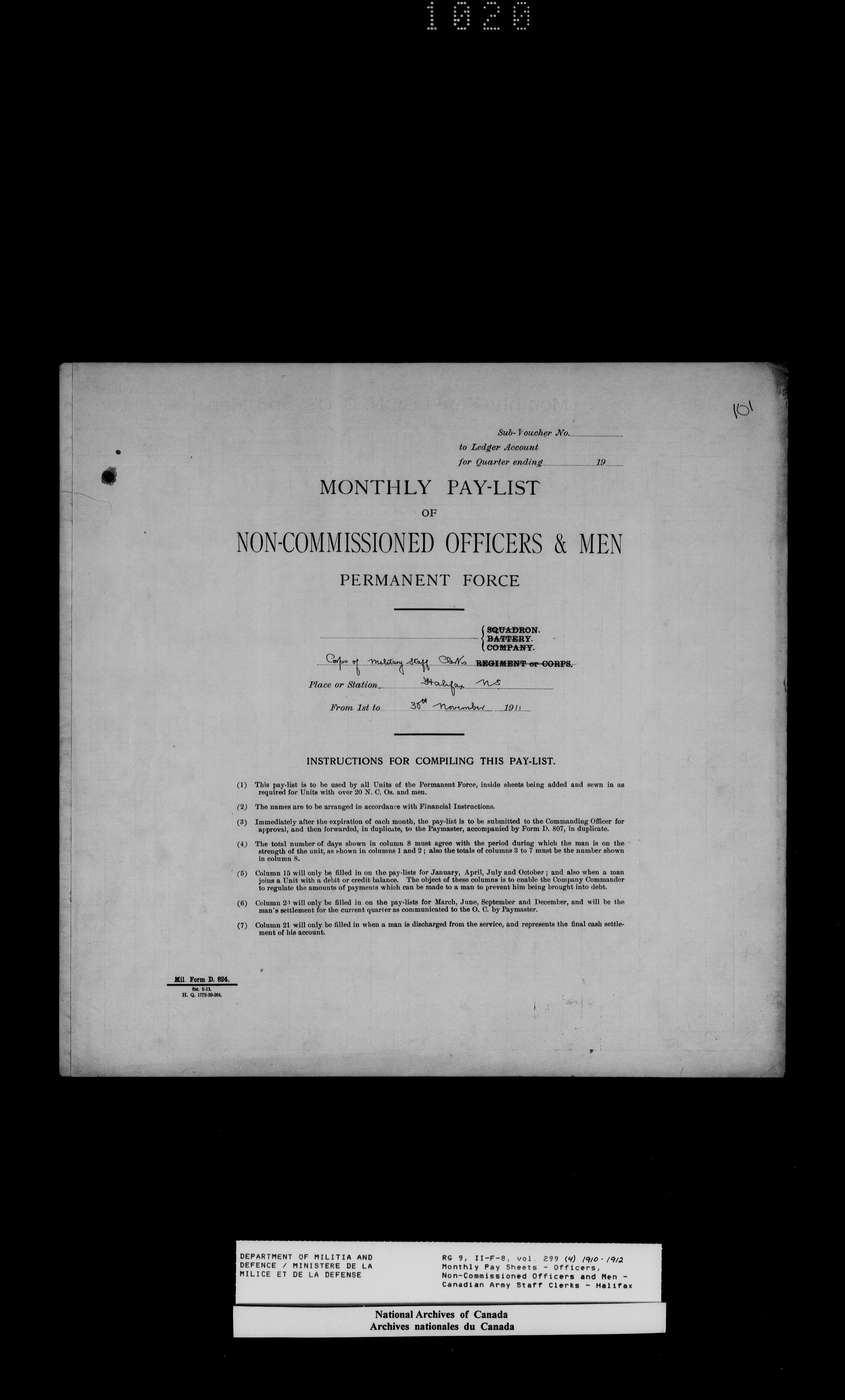 Nominal rolls and paylists for the Permanent Force (1871-1915) - 18446
