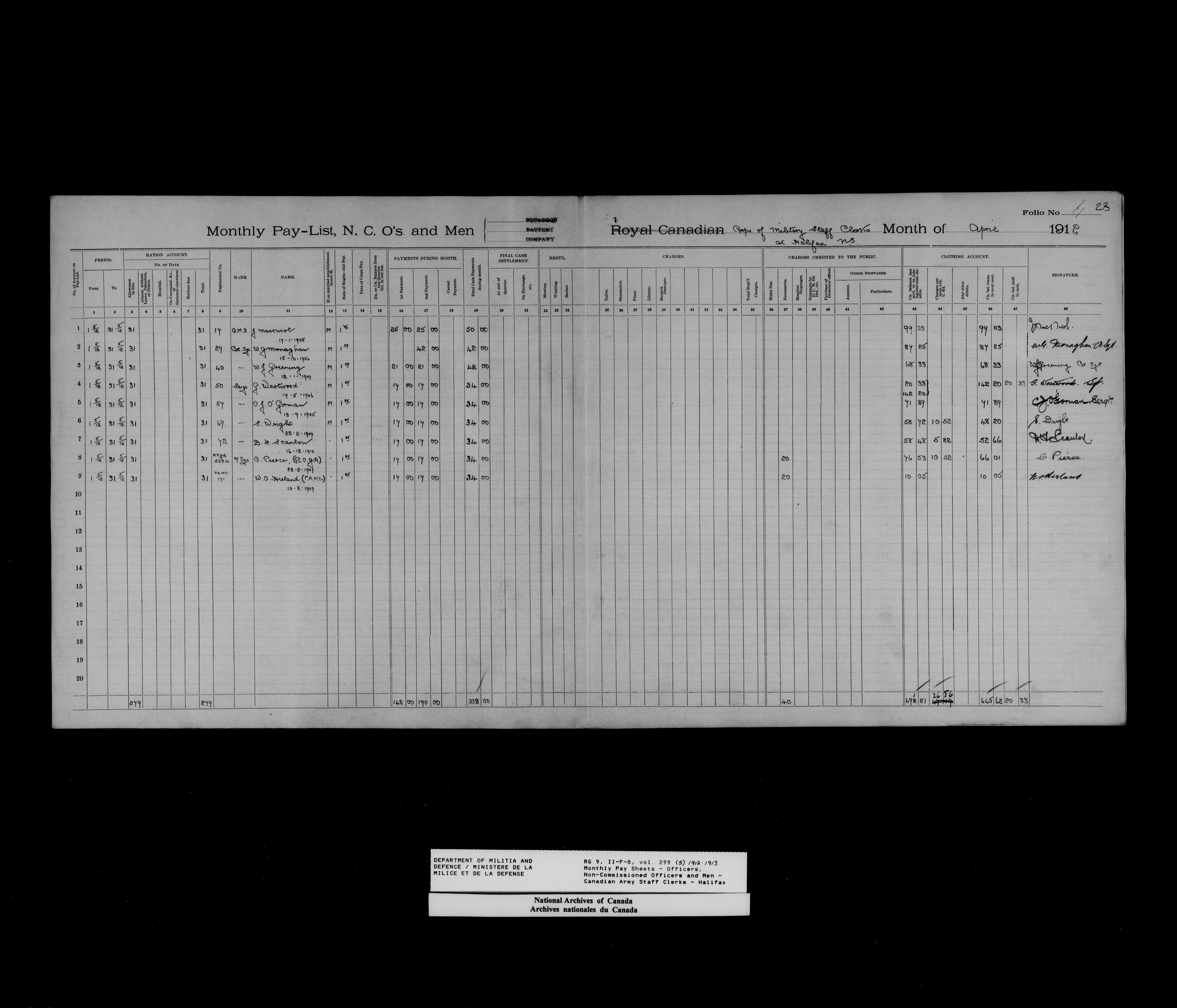 Nominal rolls and paylists for the Permanent Force (1871-1915) - 18447