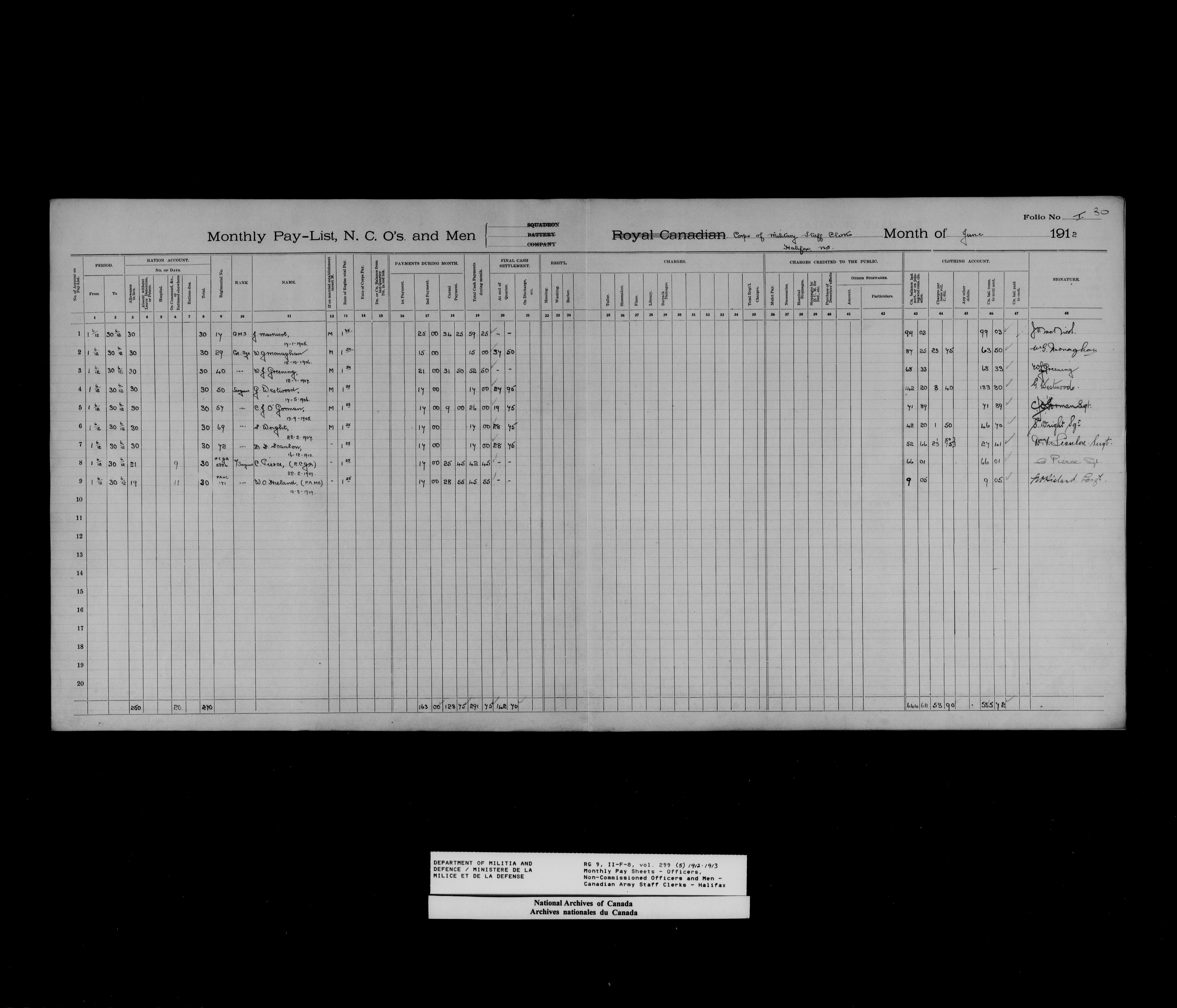 Nominal rolls and paylists for the Permanent Force (1871-1915) - 18447