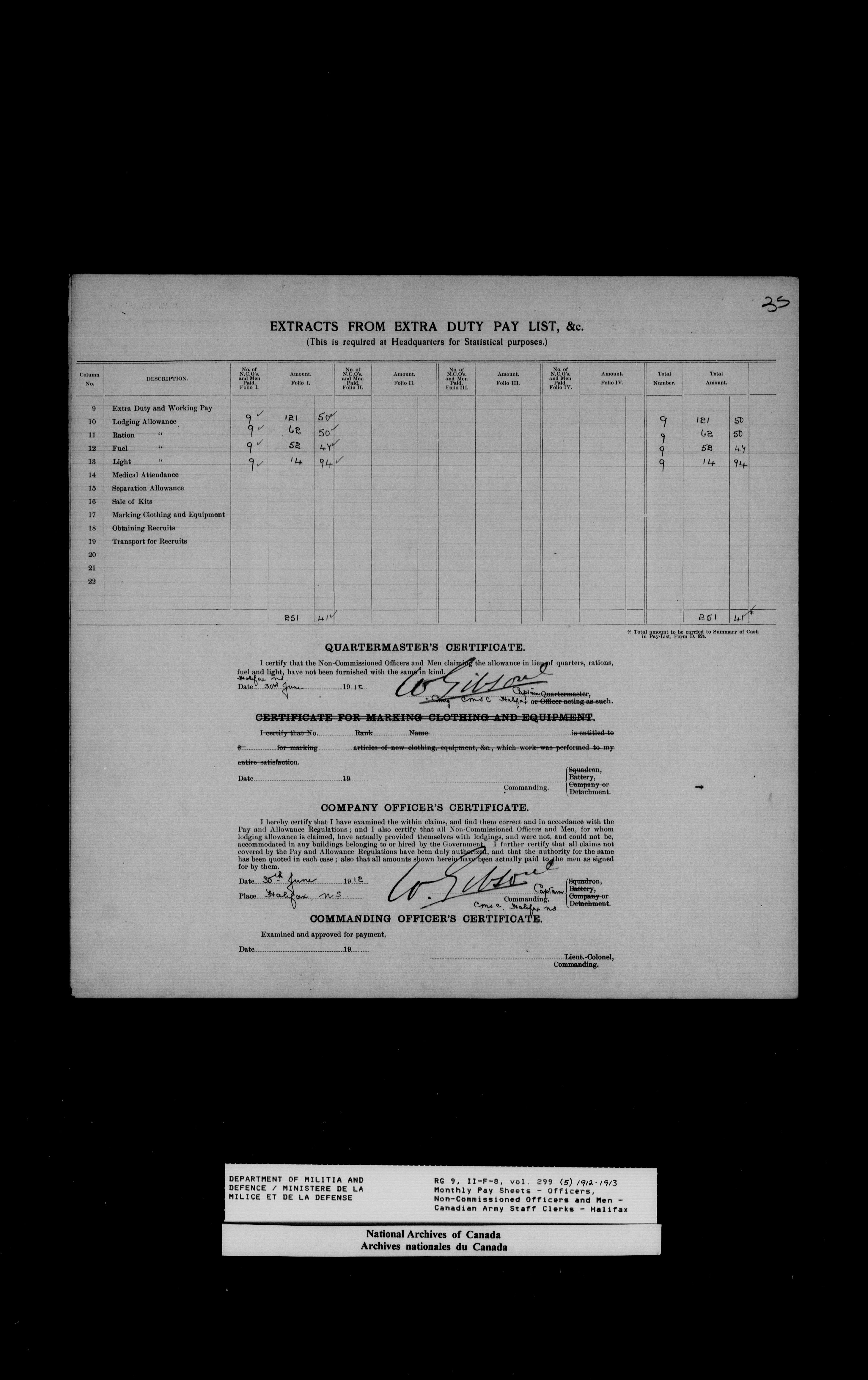Nominal rolls and paylists for the Permanent Force (1871-1915) - 18447