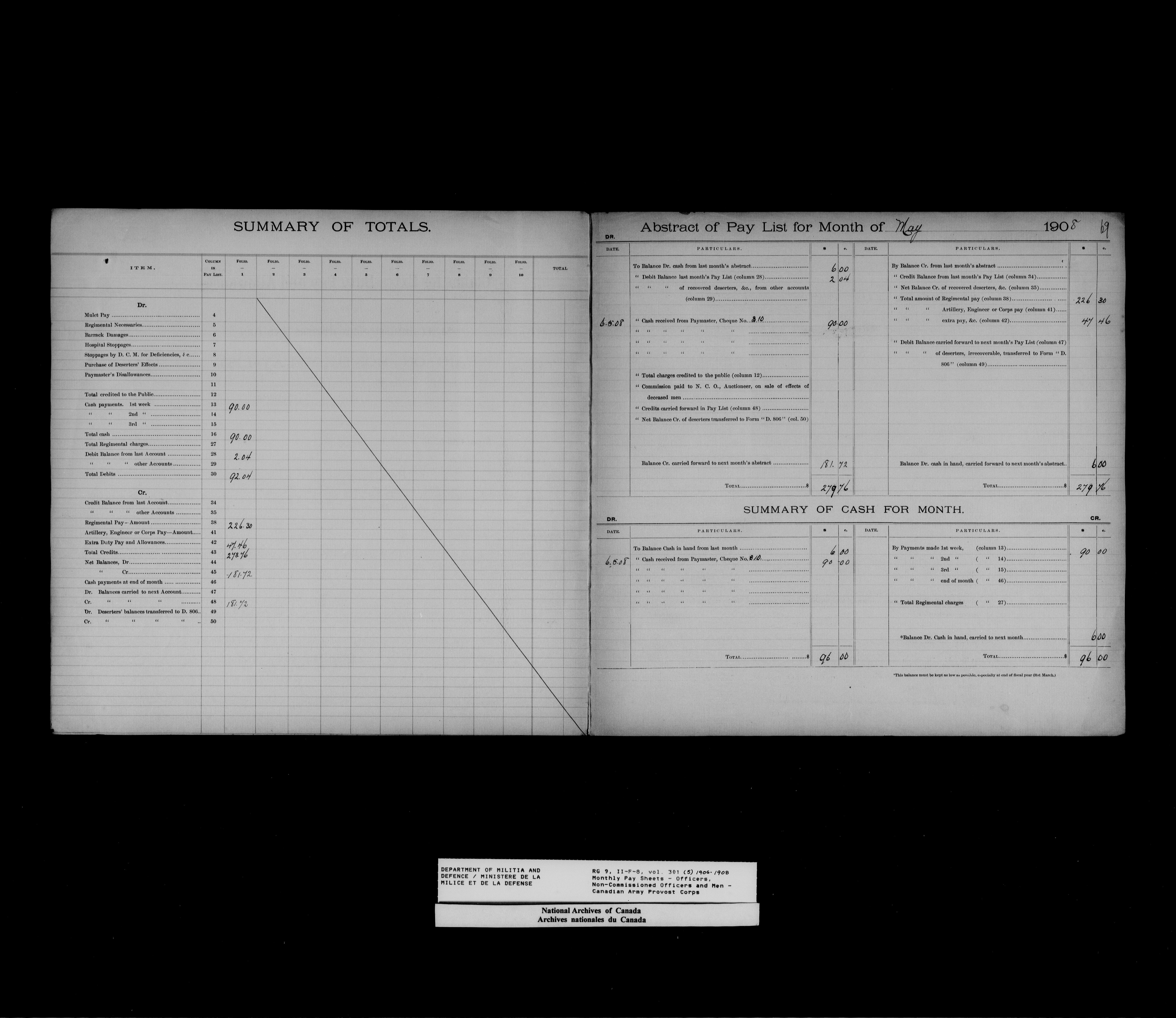Nominal rolls and paylists for the Permanent Force (1871-1915) - 18447