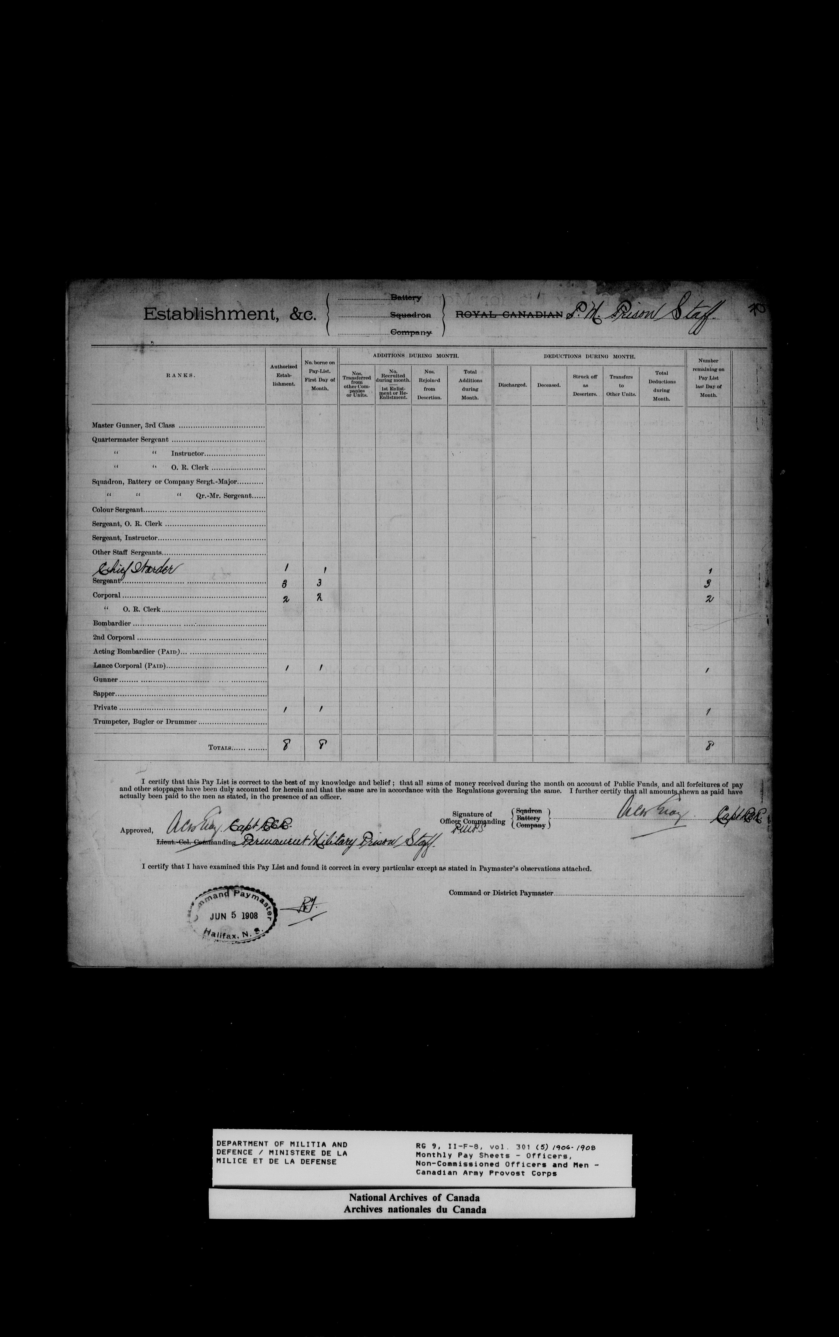 Nominal rolls and paylists for the Permanent Force (1871-1915) - 18447