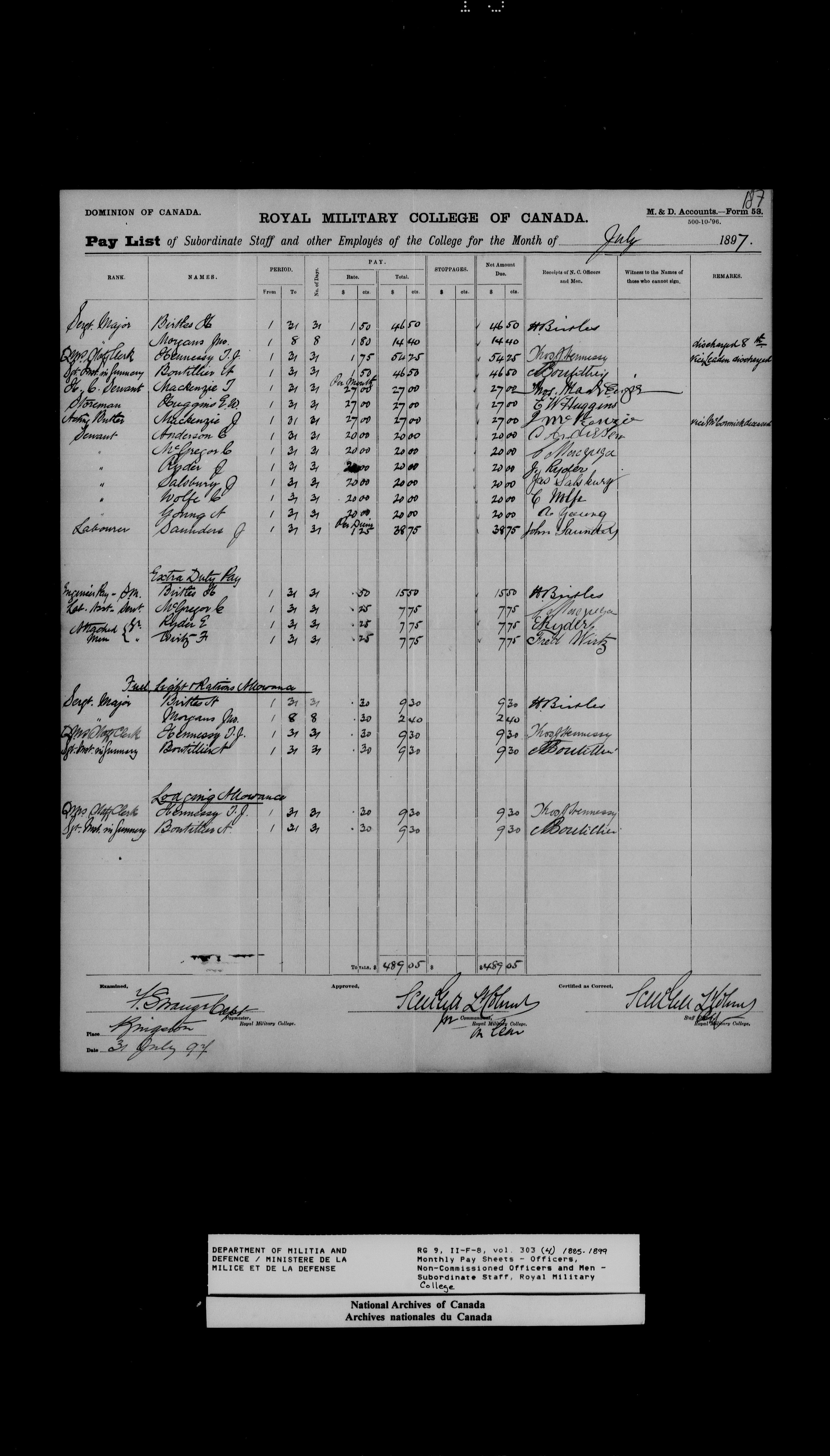 Nominal rolls and paylists for the Permanent Force (1871-1915) - 18449