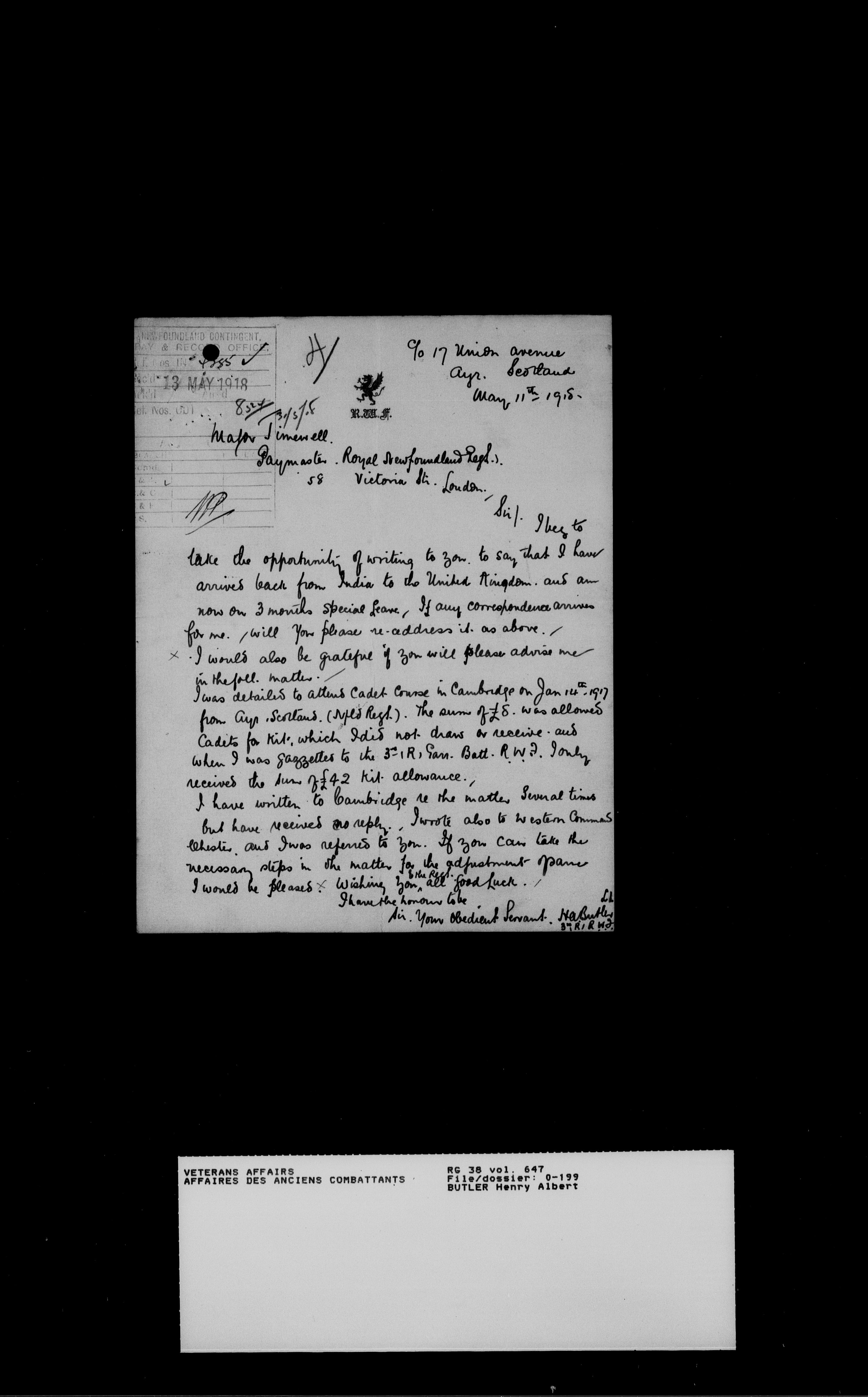 Military service files for members of the Royal Newfoundland Regiment and bandsmen and the Newfoundland Forestry Corps (1914-1919) - 18453