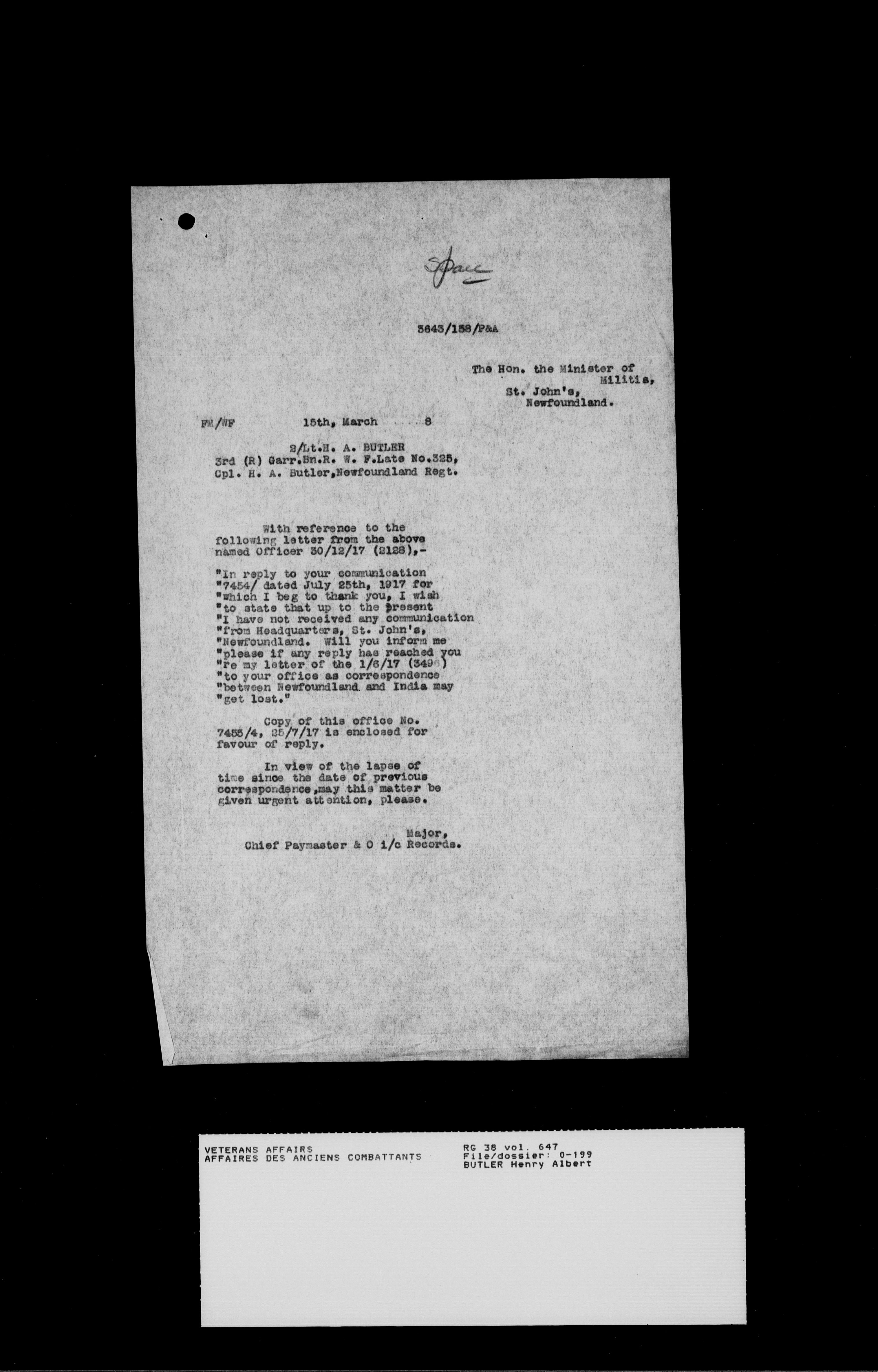 Military service files for members of the Royal Newfoundland Regiment and bandsmen and the Newfoundland Forestry Corps (1914-1919) - 18453