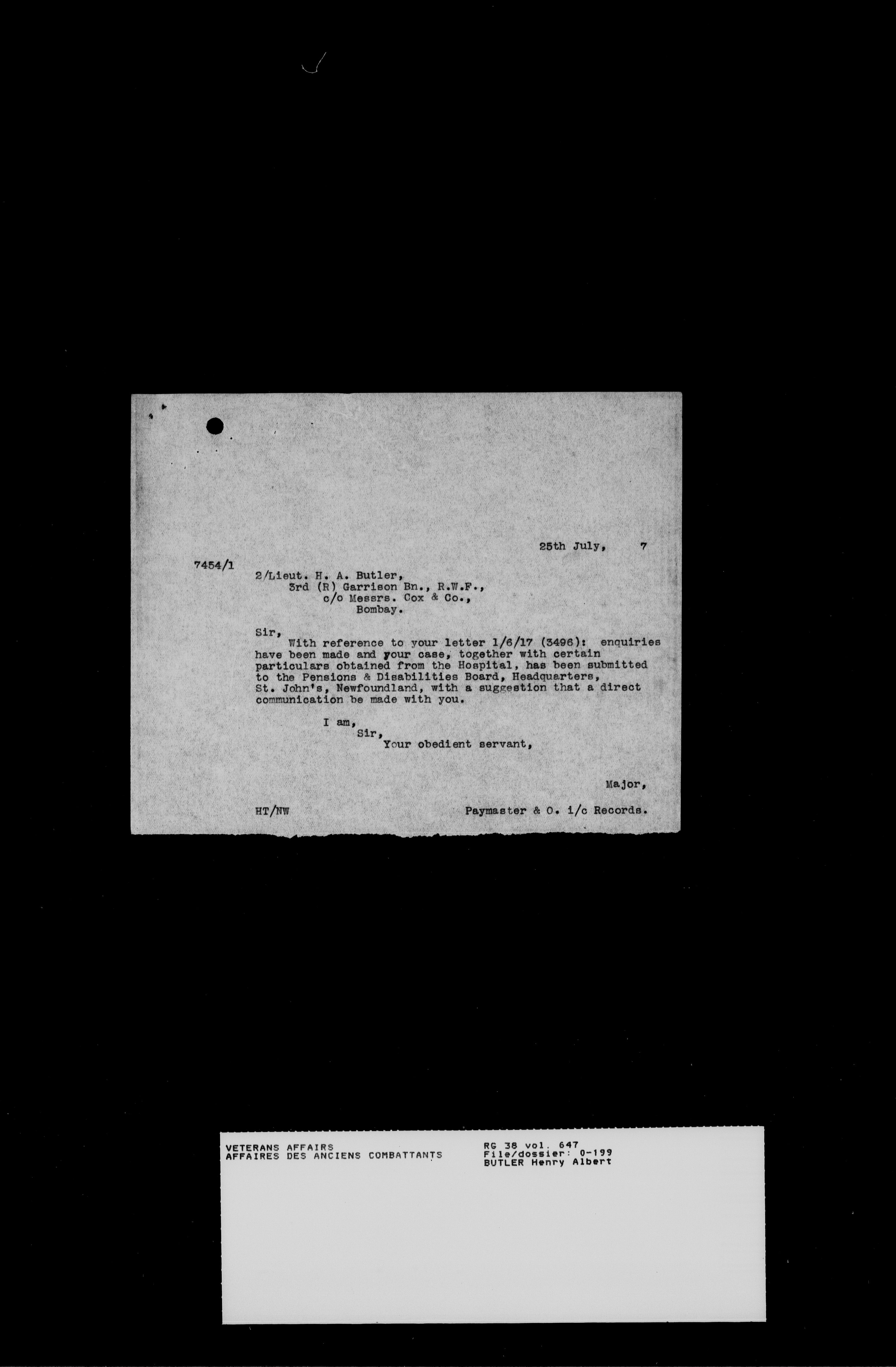 Military service files for members of the Royal Newfoundland Regiment and bandsmen and the Newfoundland Forestry Corps (1914-1919) - 18453