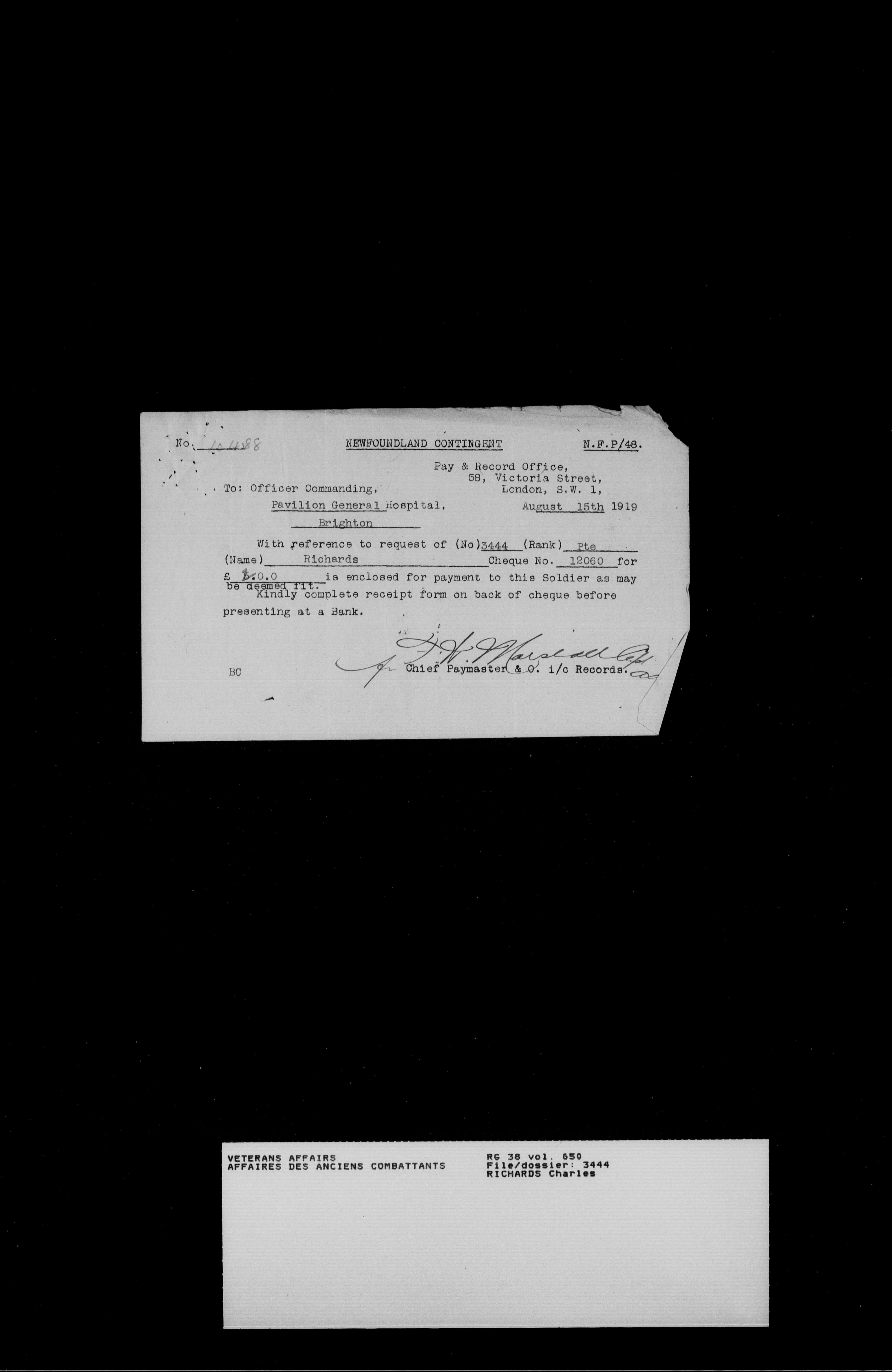 Royal Newfoundland Regiment service files : T-18457