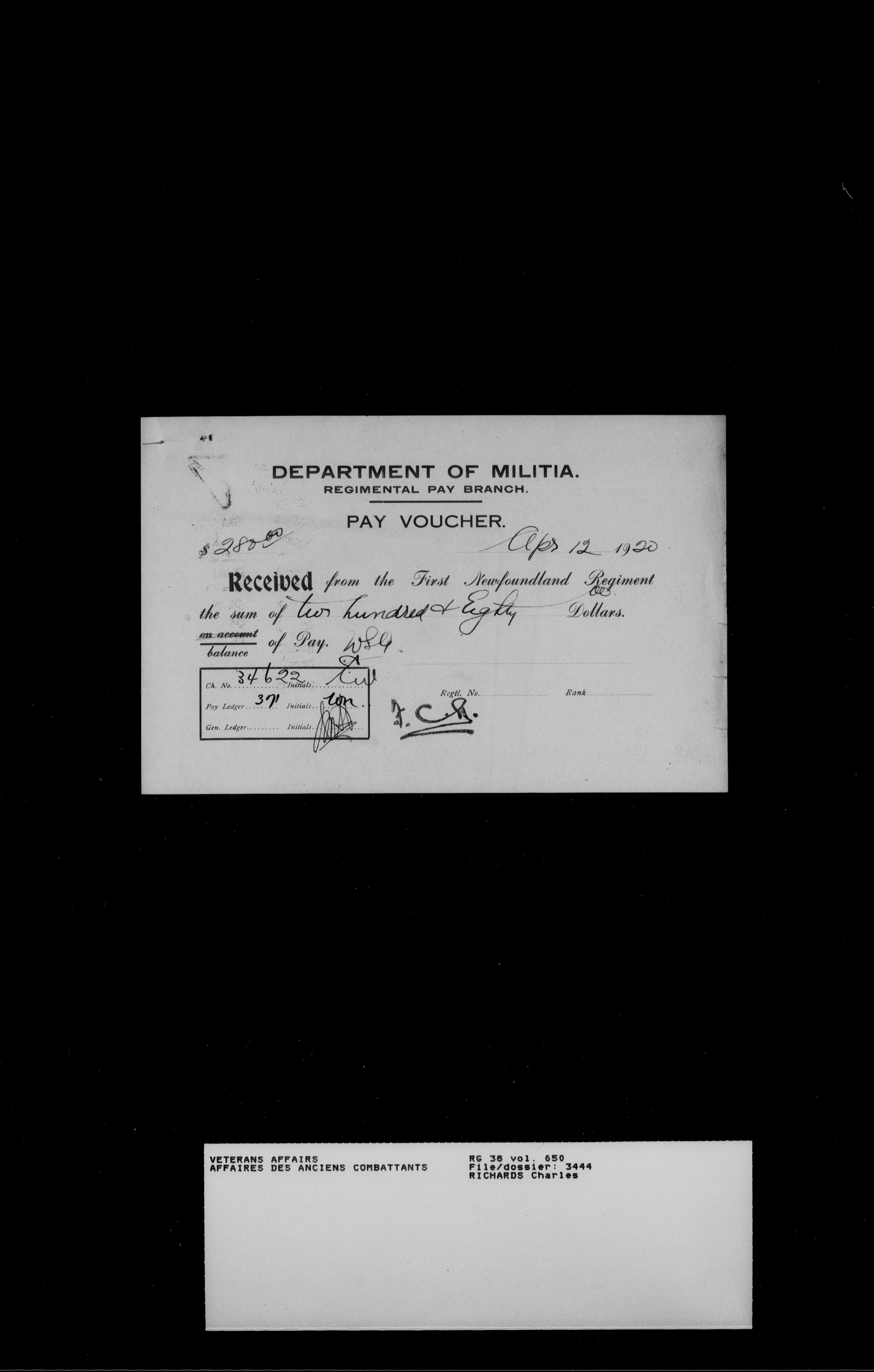 Royal Newfoundland Regiment service files : T-18457