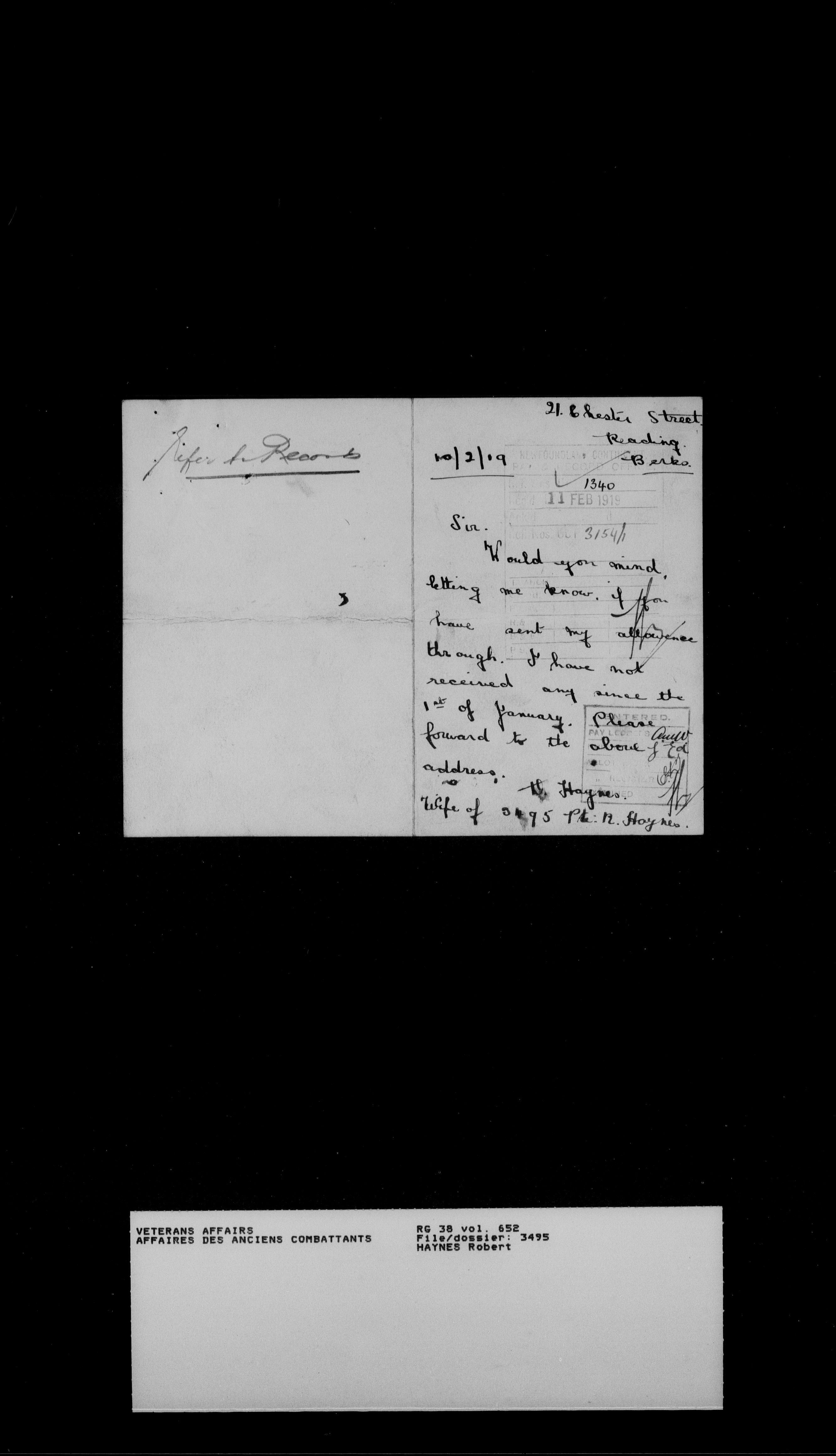 Military service files for members of the Royal Newfoundland Regiment and bandsmen and the Newfoundland Forestry Corps (1914-1919) - 18460