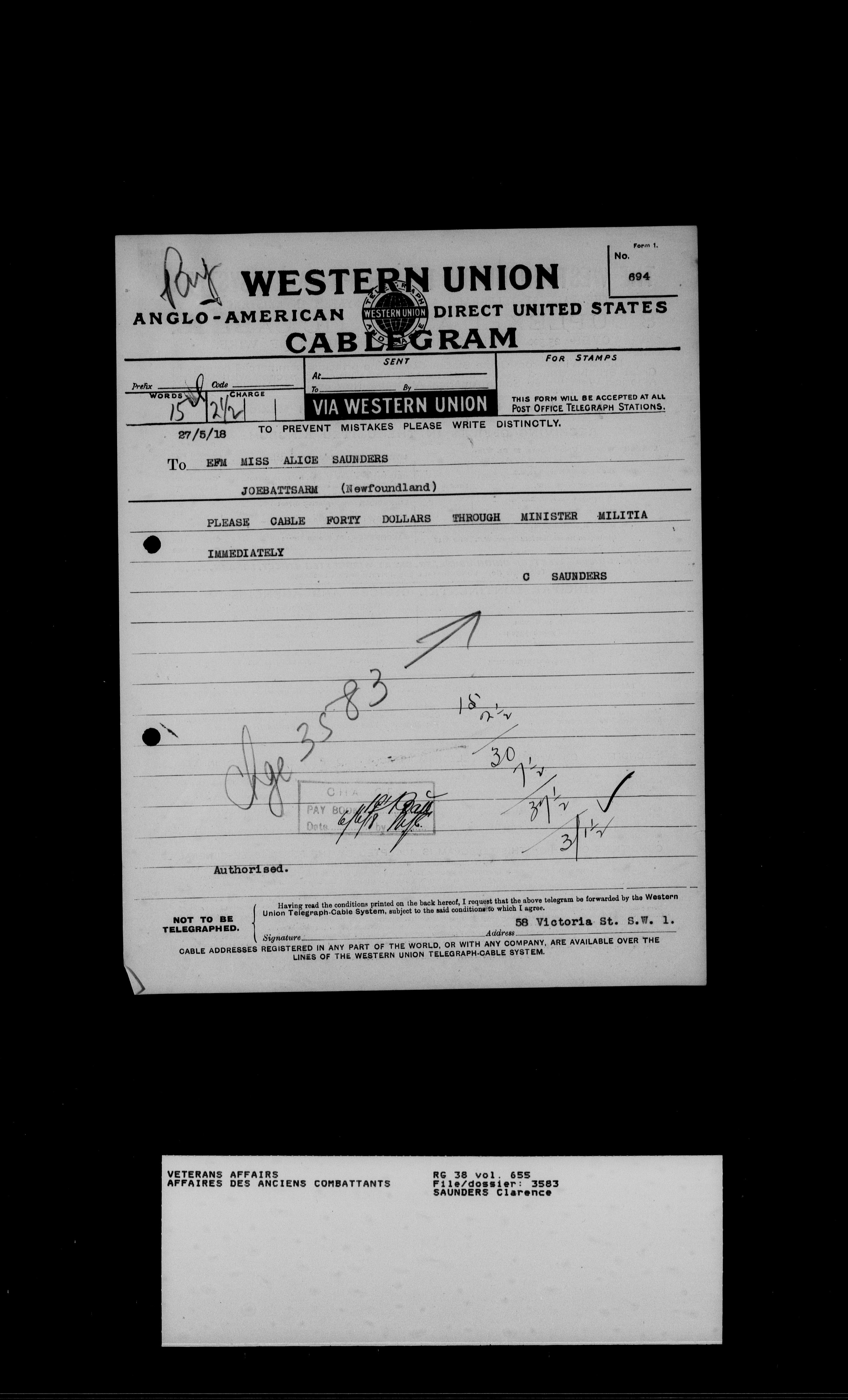 Royal Newfoundland Regiment service files : T-18464