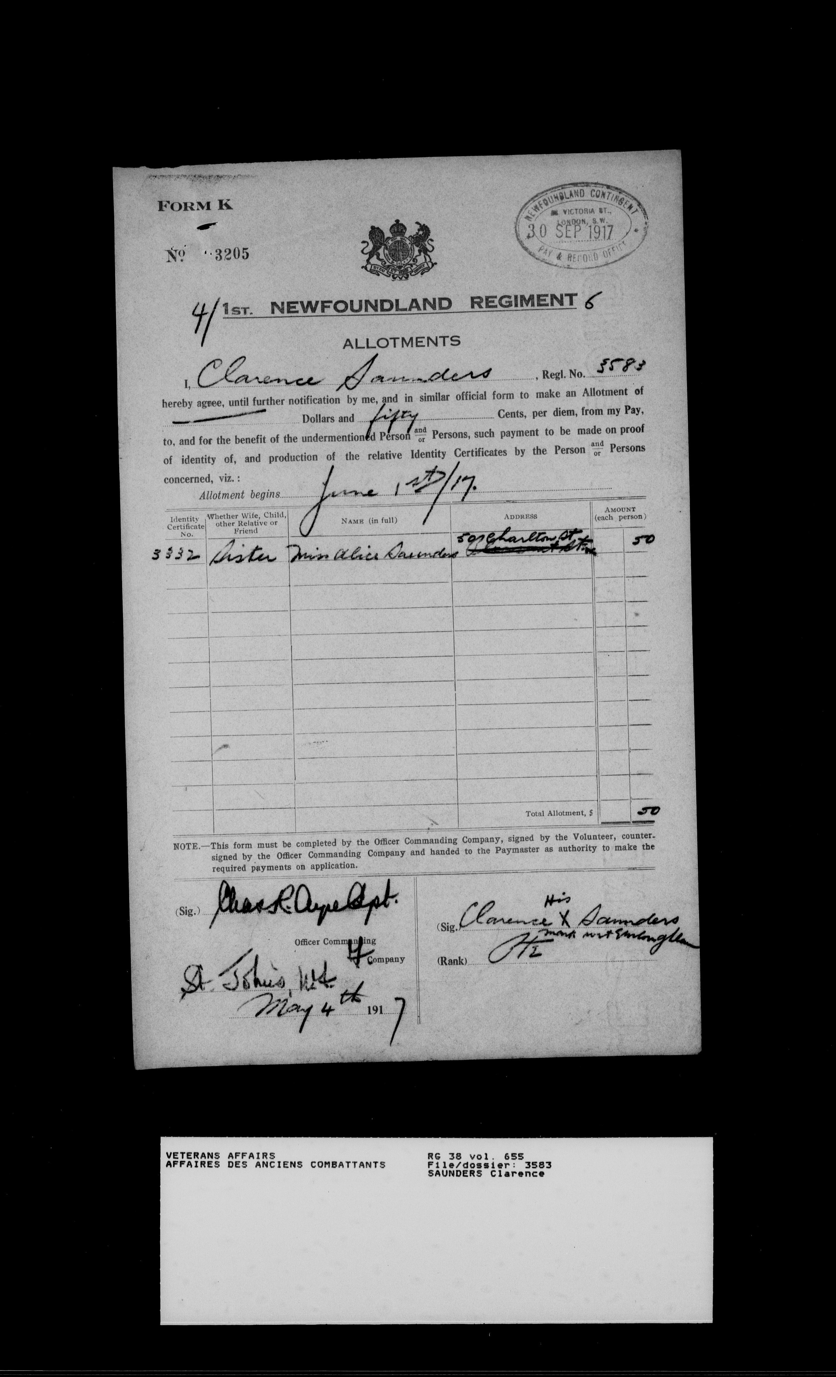Military service files for members of the Royal Newfoundland Regiment and bandsmen and the Newfoundland Forestry Corps (1914-1919) - 18464