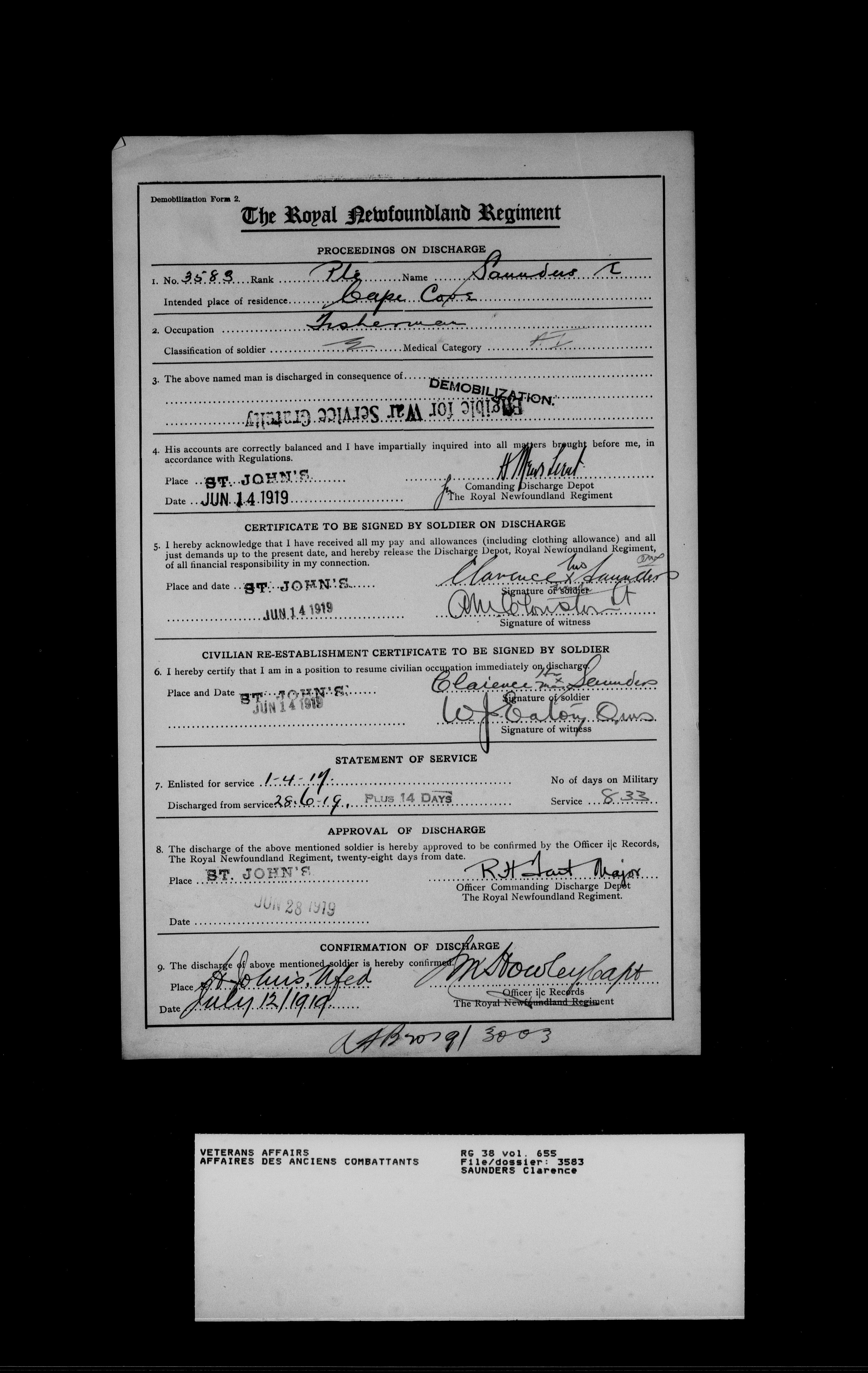 Military service files for members of the Royal Newfoundland Regiment and bandsmen and the Newfoundland Forestry Corps (1914-1919) - 18464
