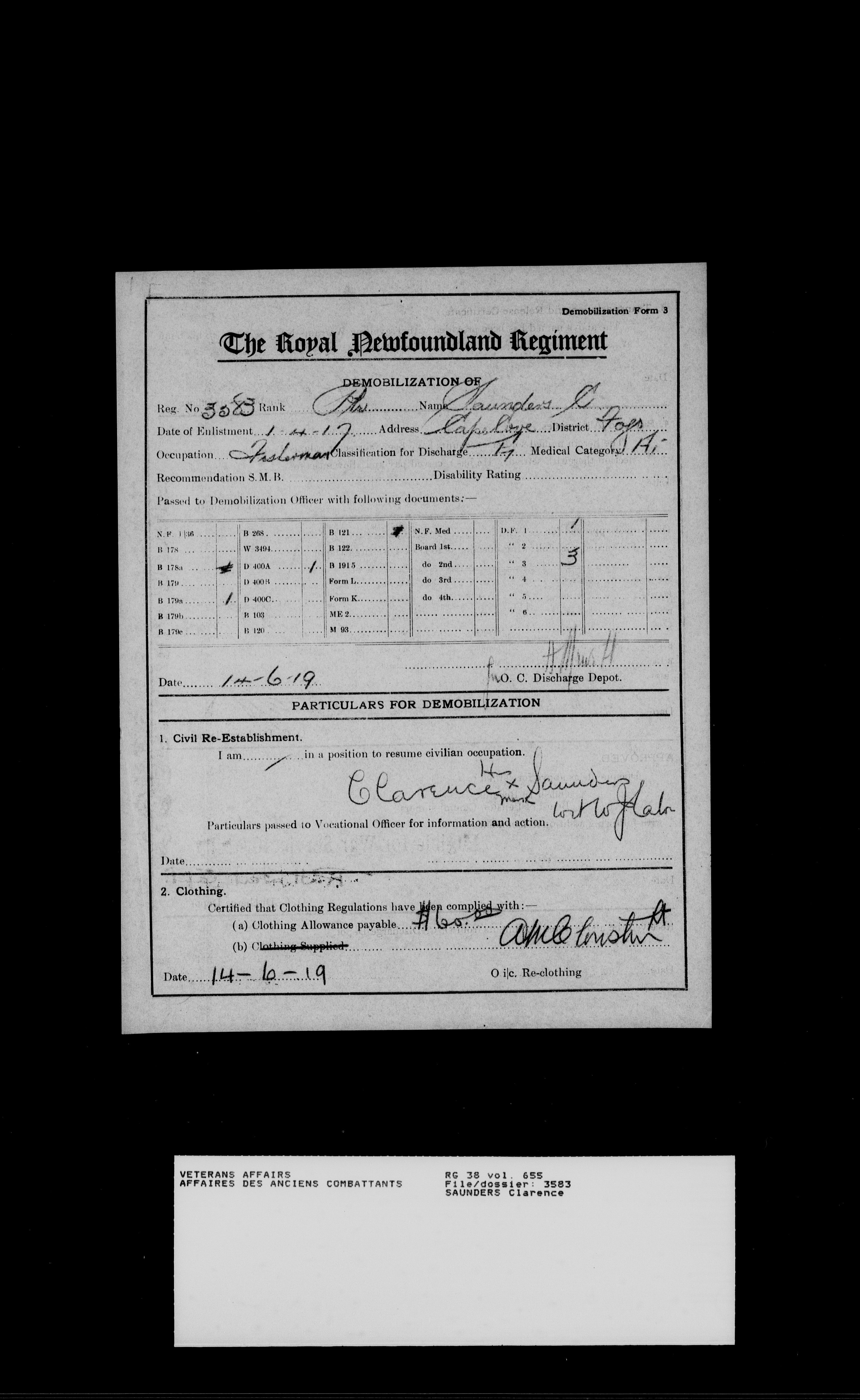 Military service files for members of the Royal Newfoundland Regiment and bandsmen and the Newfoundland Forestry Corps (1914-1919) - 18464