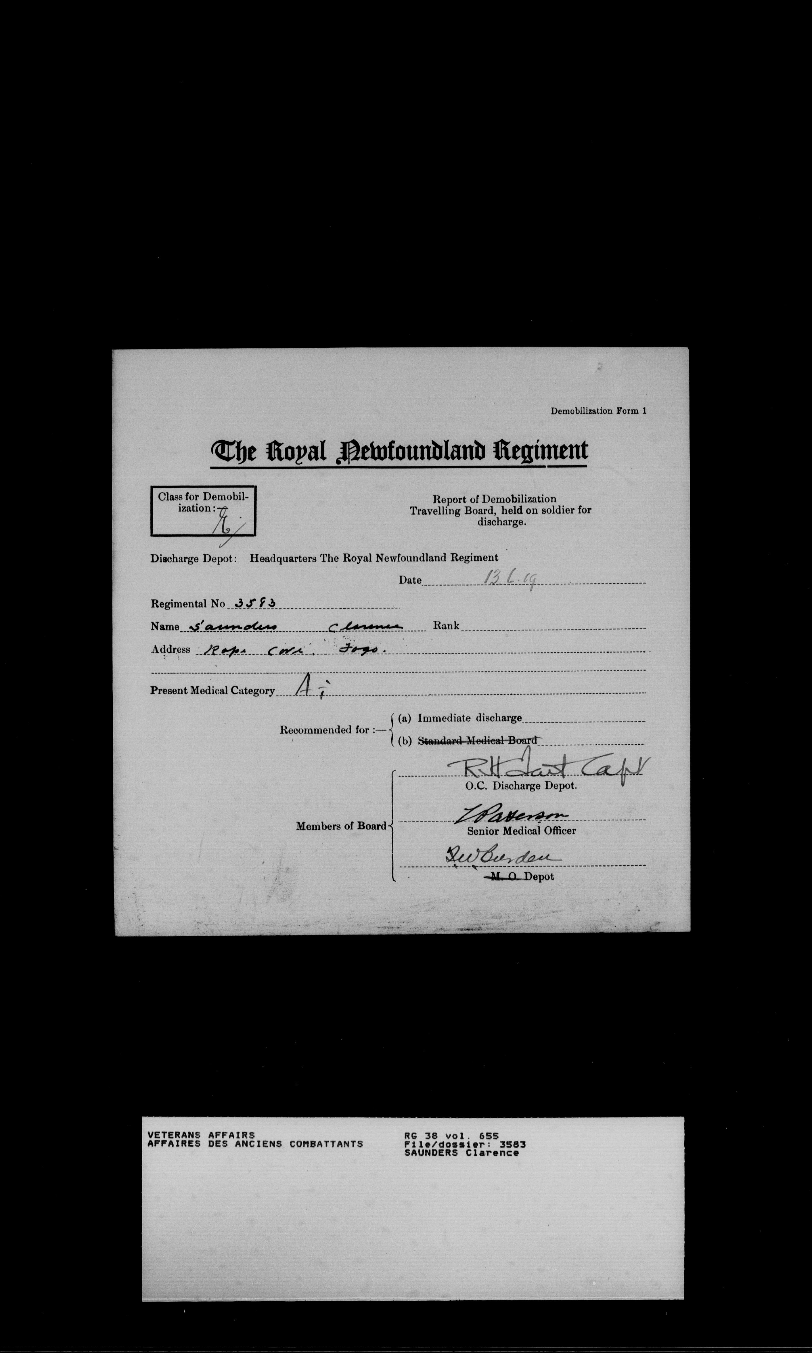 Military service files for members of the Royal Newfoundland Regiment and bandsmen and the Newfoundland Forestry Corps (1914-1919) - 18464