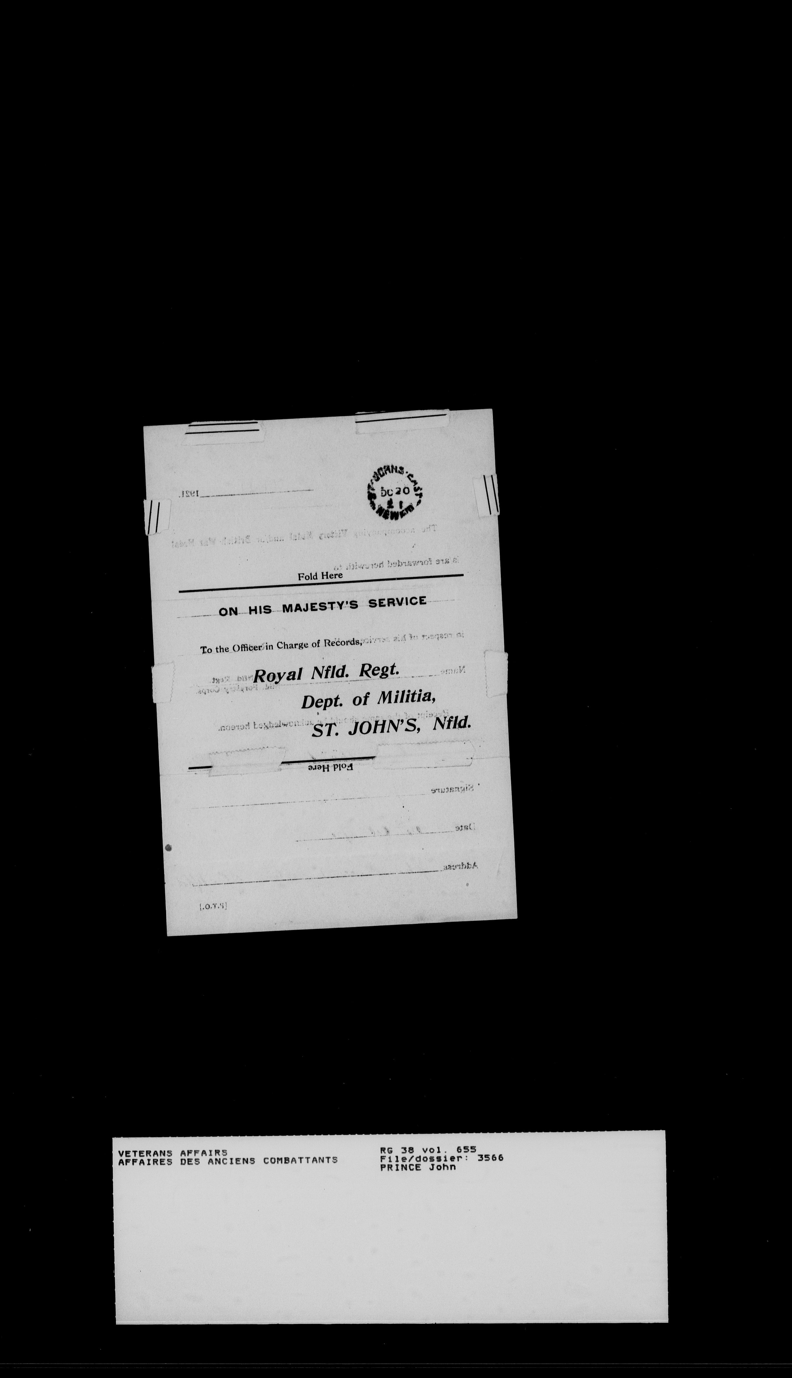 Royal Newfoundland Regiment service files : T-18464