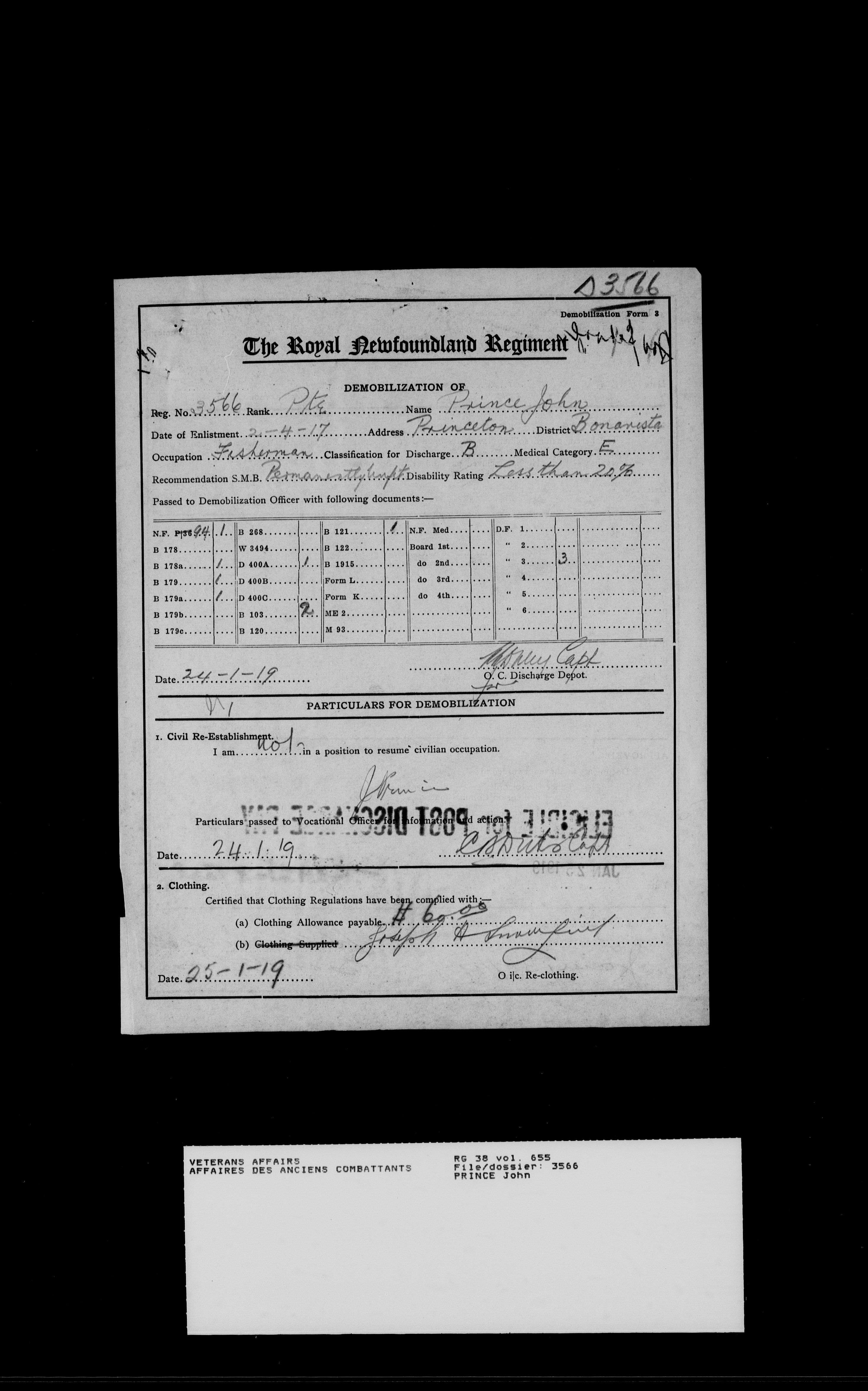 Military service files for members of the Royal Newfoundland Regiment and bandsmen and the Newfoundland Forestry Corps (1914-1919) - 18464