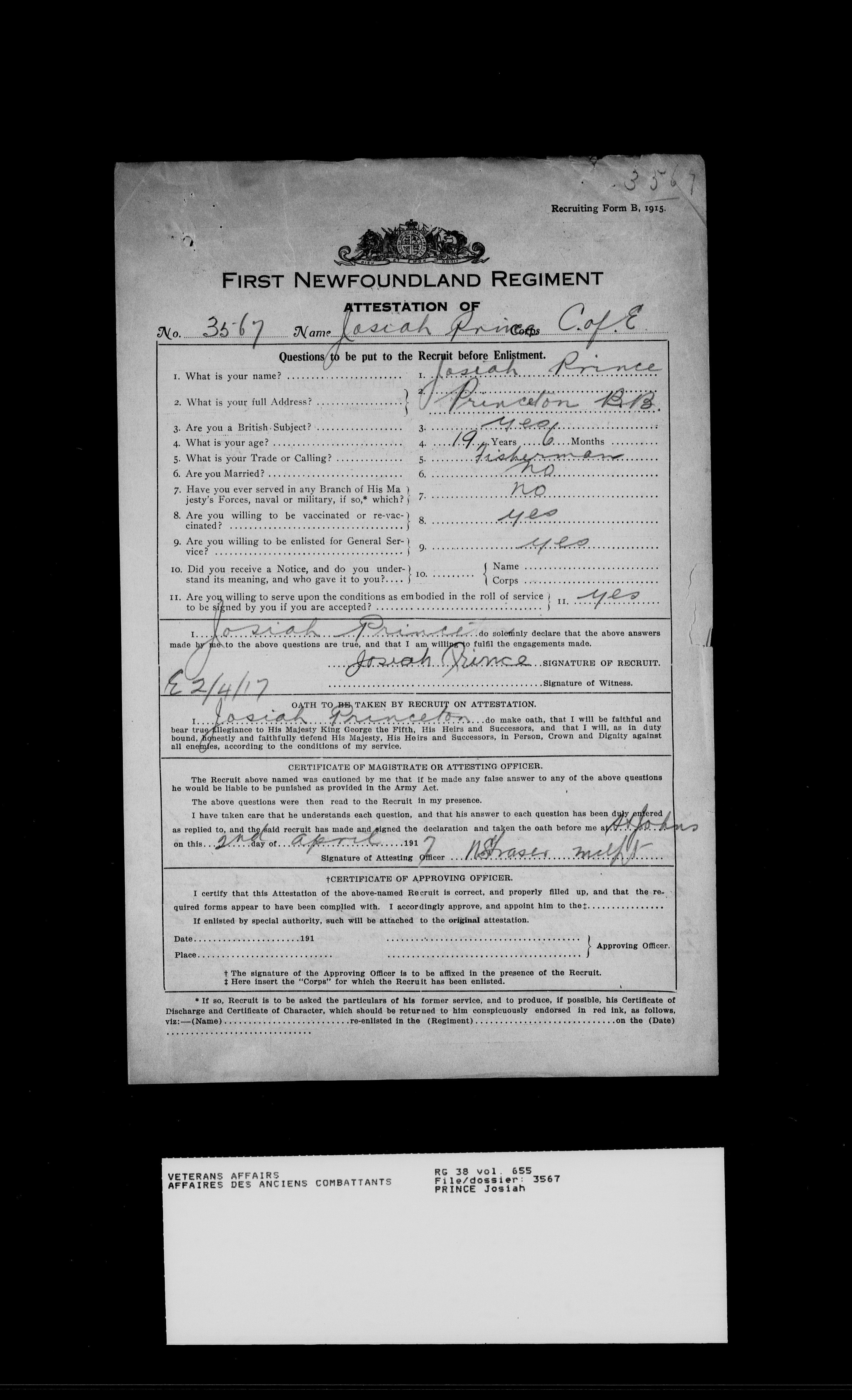 Military service files for members of the Royal Newfoundland Regiment and bandsmen and the Newfoundland Forestry Corps (1914-1919) - 18464