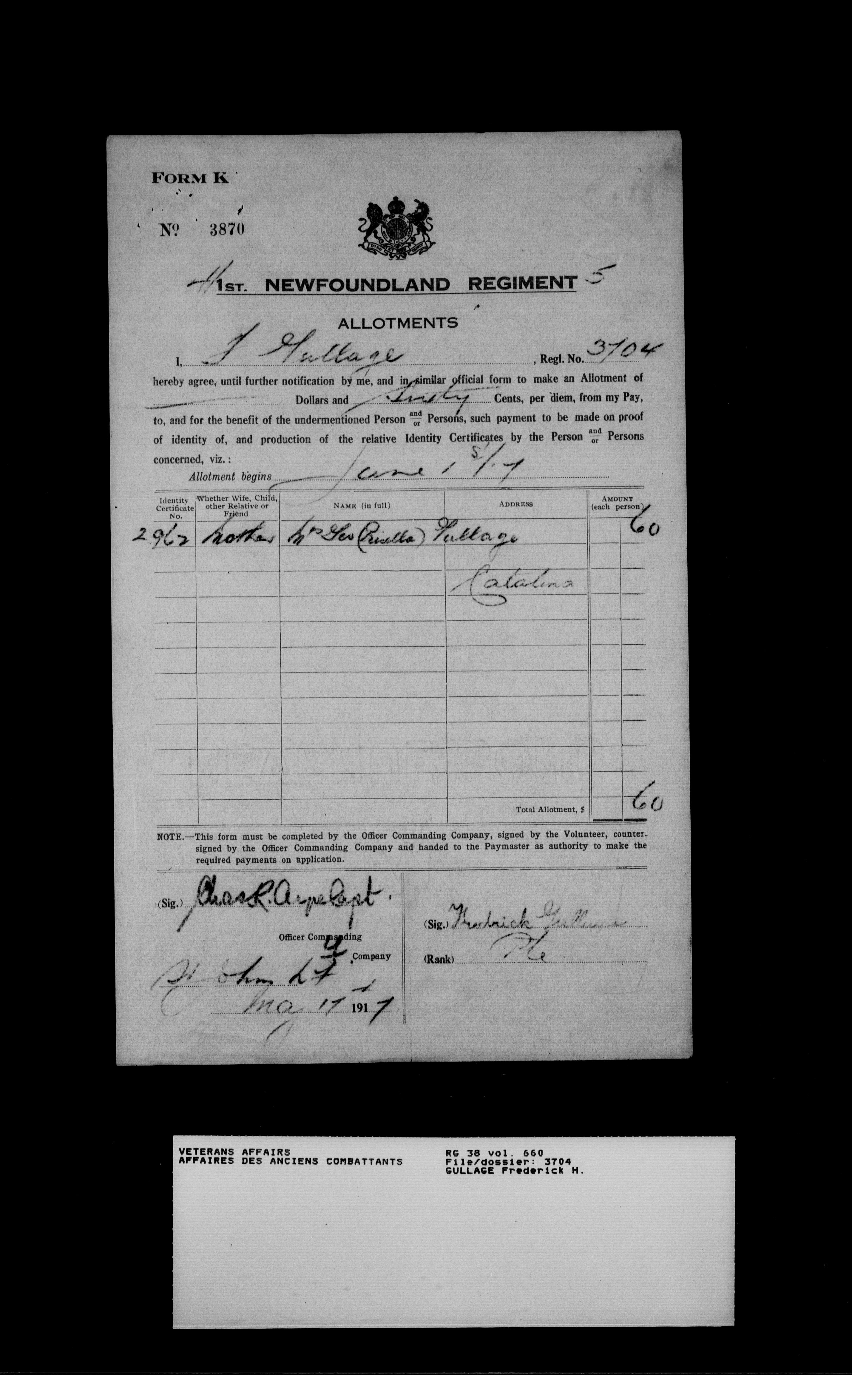 Military service files for members of the Royal Newfoundland Regiment and bandsmen and the Newfoundland Forestry Corps (1914-1919) - 18471