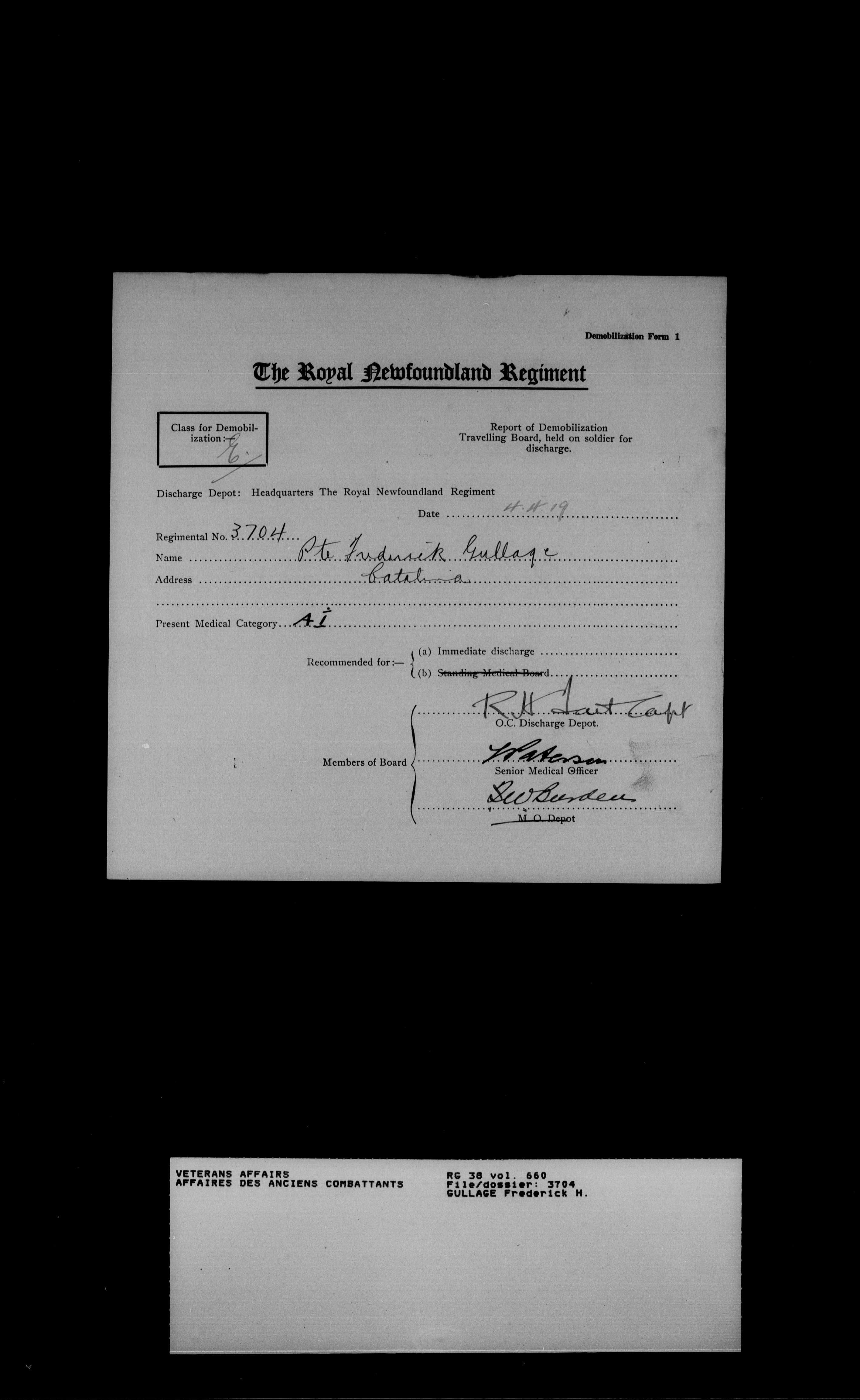 Military service files for members of the Royal Newfoundland Regiment and bandsmen and the Newfoundland Forestry Corps (1914-1919) - 18471