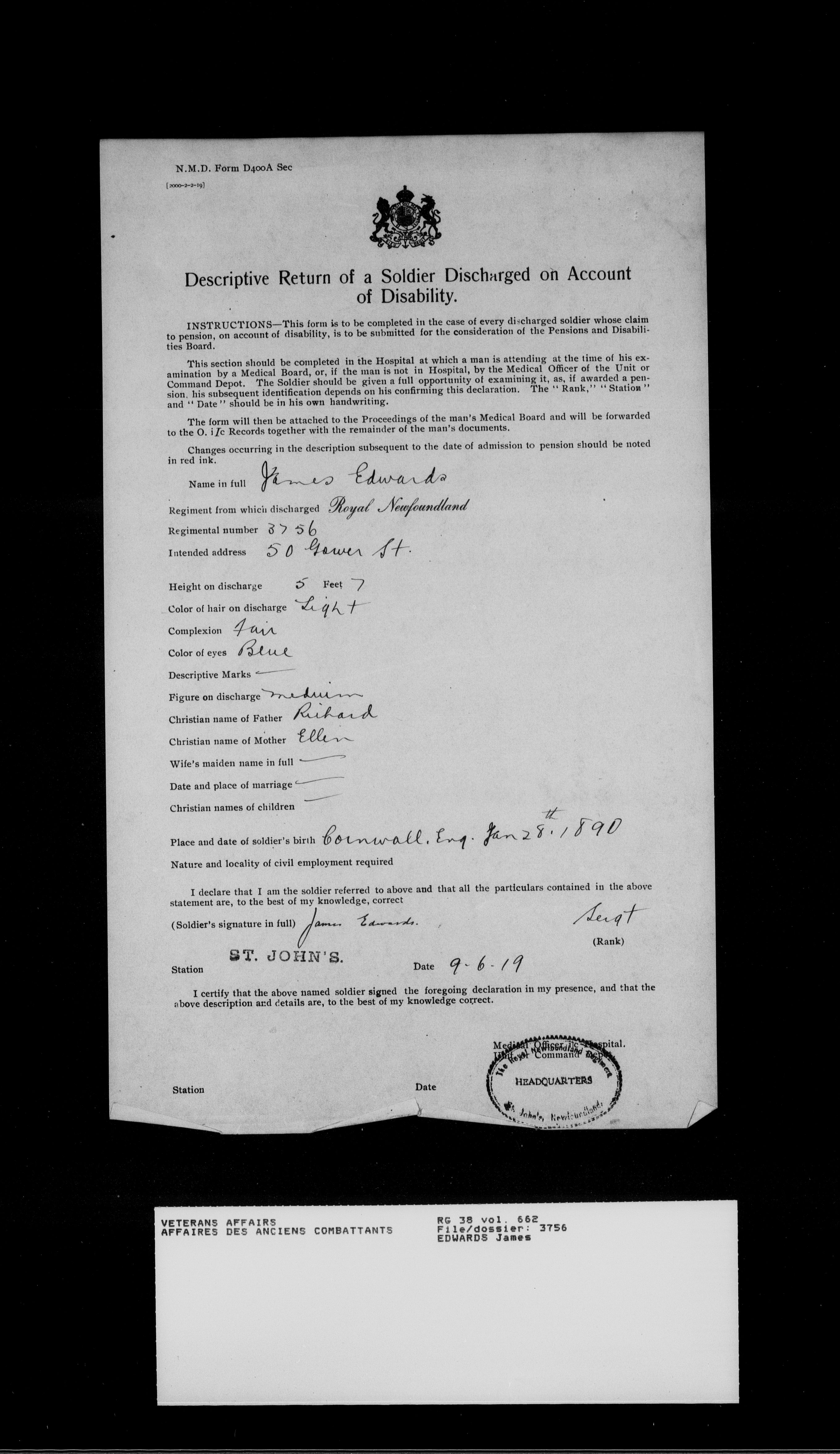 Military service files for members of the Royal Newfoundland Regiment and bandsmen and the Newfoundland Forestry Corps (1914-1919) - 18475