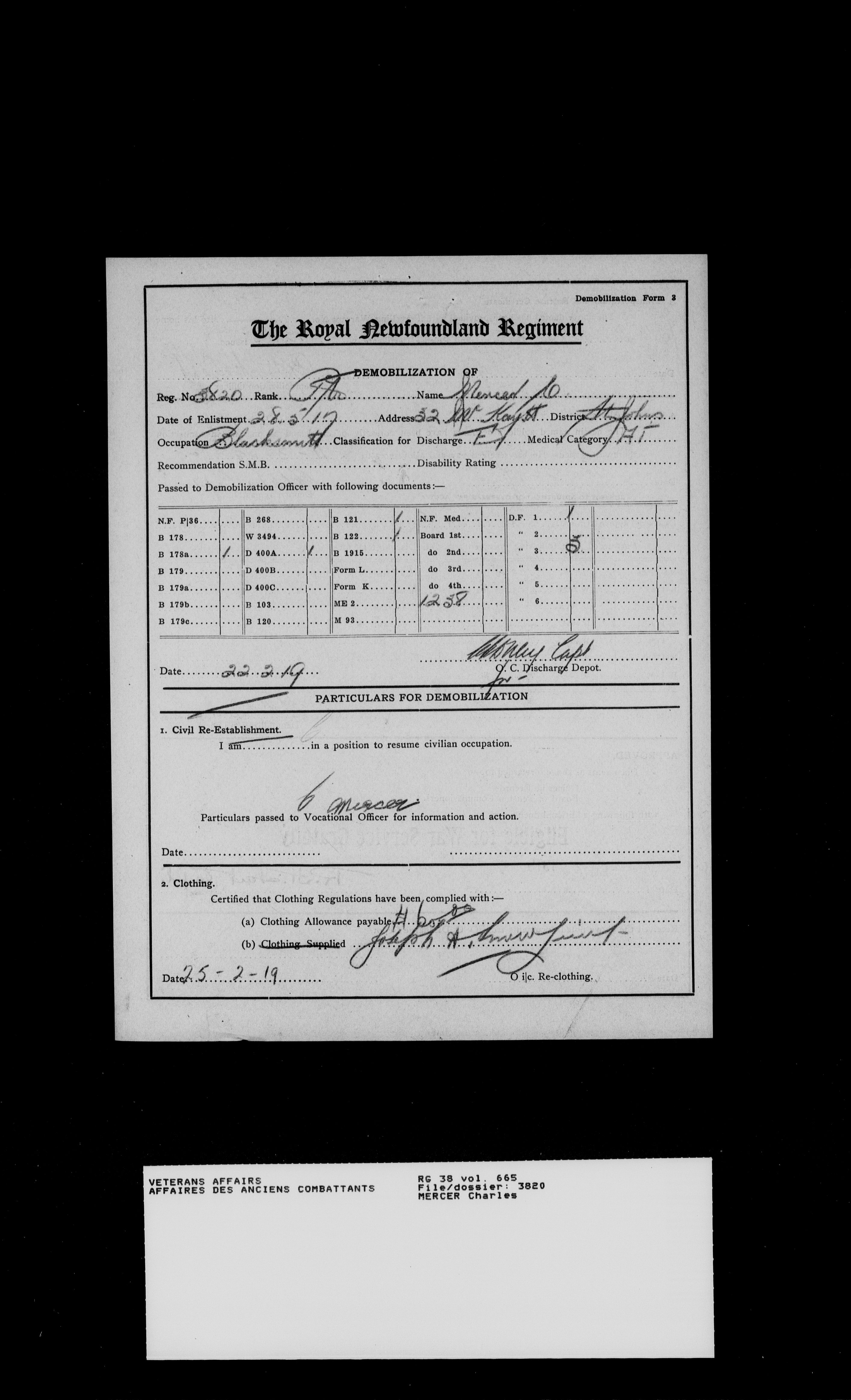 Military service files for members of the Royal Newfoundland Regiment and bandsmen and the Newfoundland Forestry Corps (1914-1919) - 18478