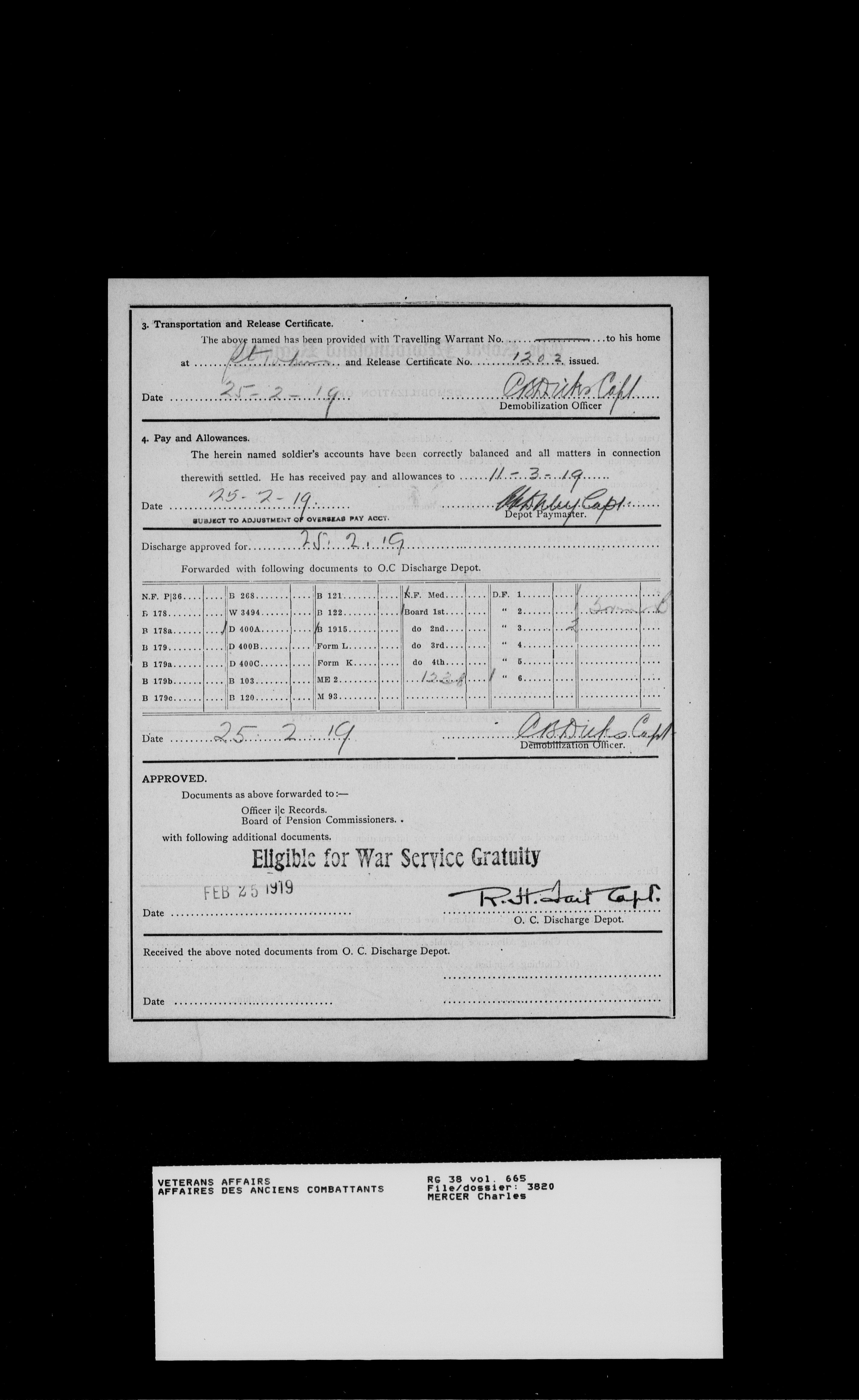 Military service files for members of the Royal Newfoundland Regiment and bandsmen and the Newfoundland Forestry Corps (1914-1919) - 18478