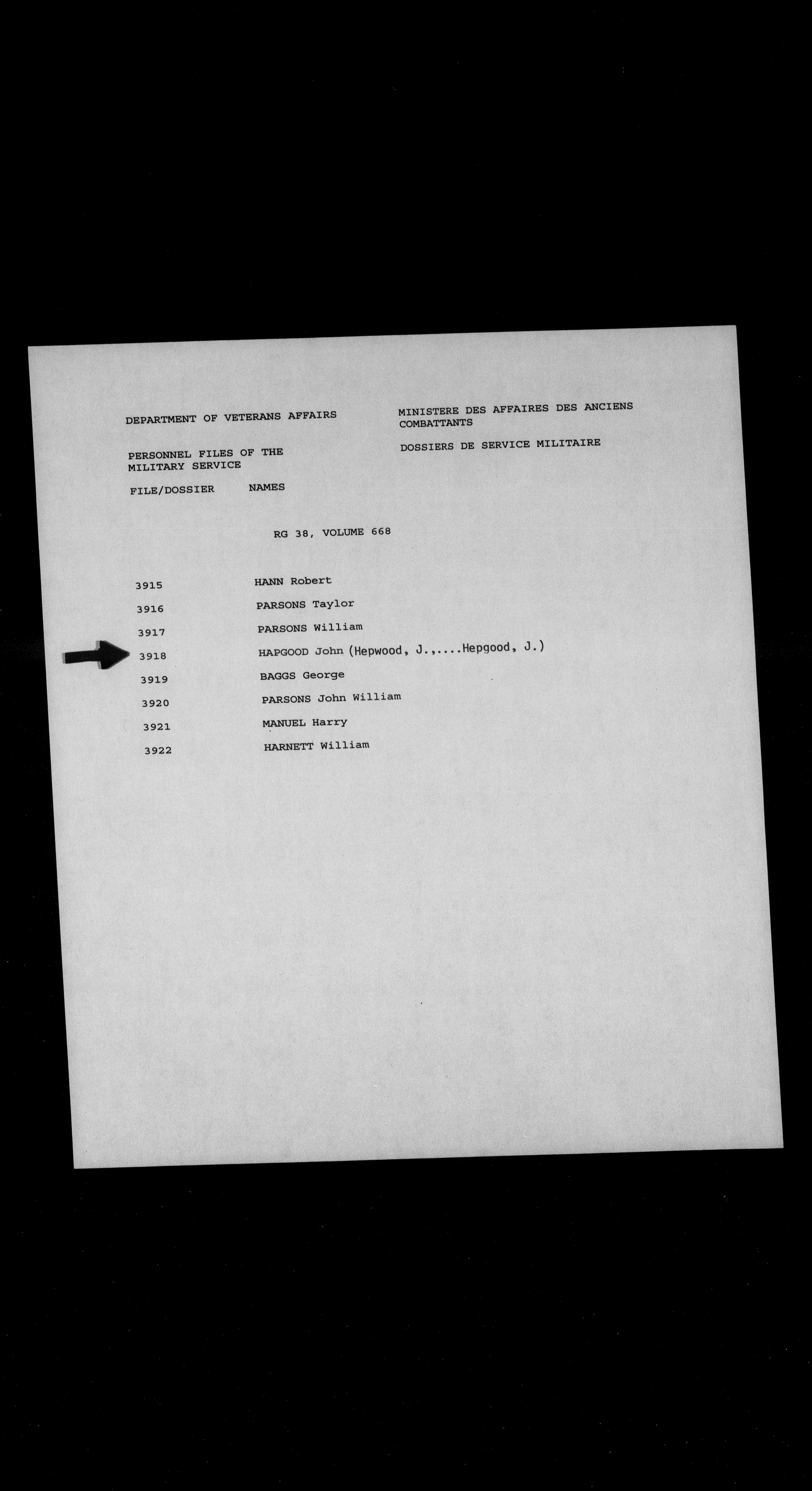 Military service files for members of the Royal Newfoundland Regiment and bandsmen and the Newfoundland Forestry Corps (1914-1919) - 18482